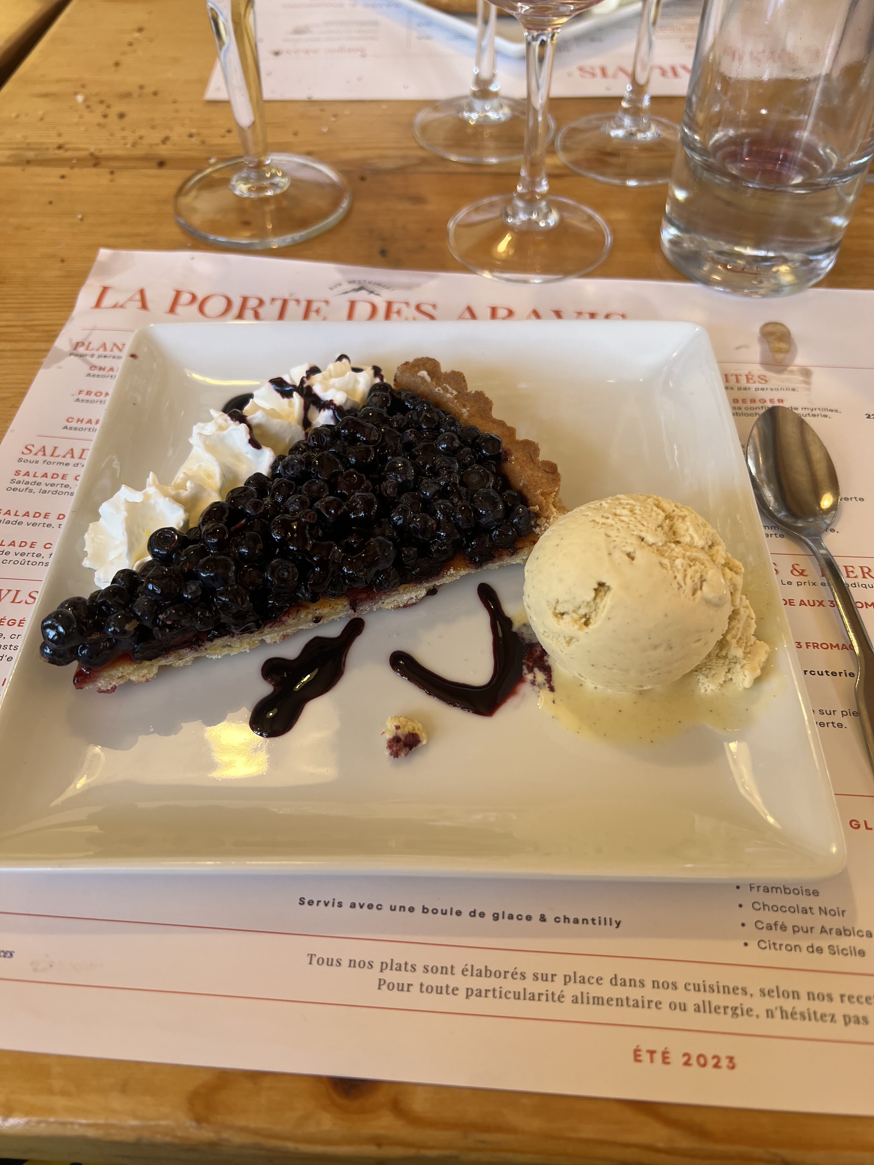 Très bonne tarte aux myrtilles dans un très joli cadre