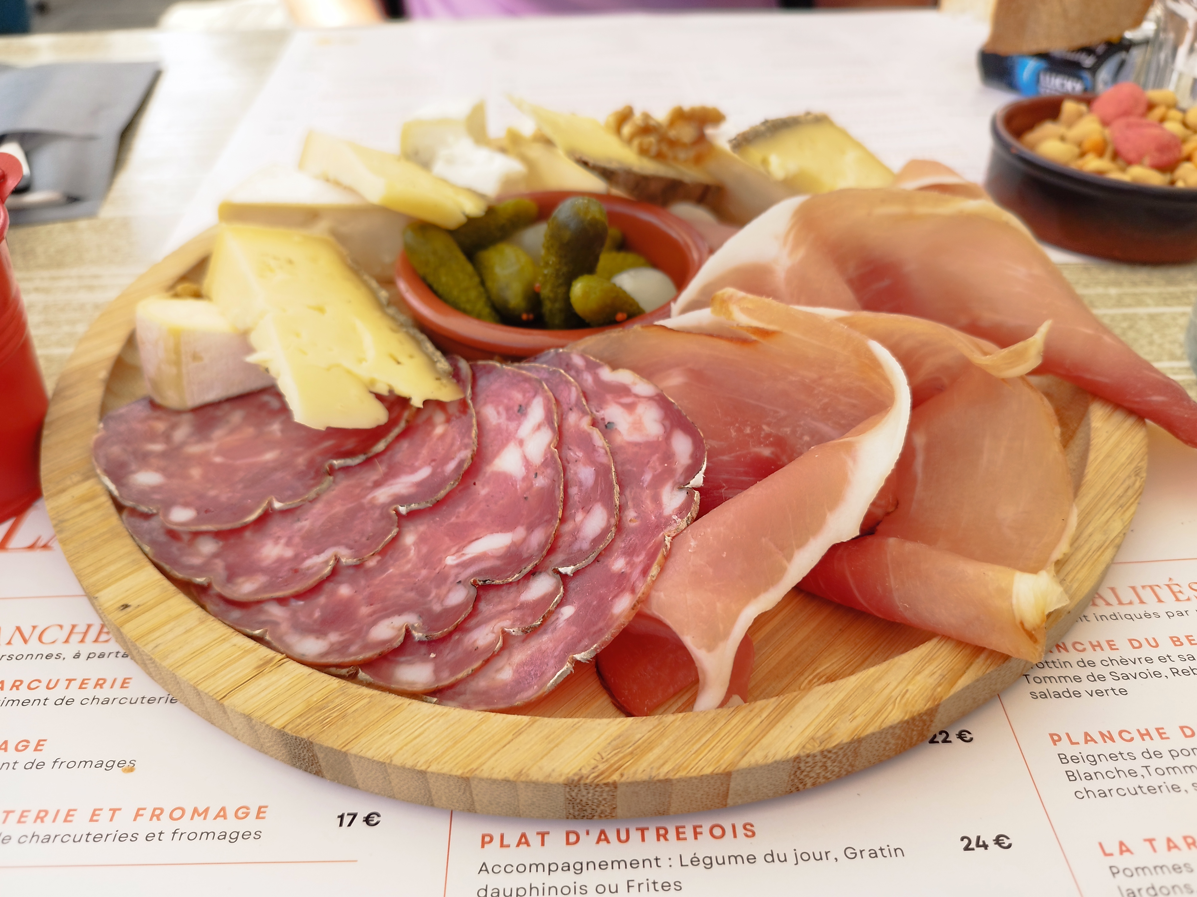 Carte pour tout les goûts. Pour ma part, j'ai pris la Planche des Aravis avec des beignets de pomme de terre très bons, un jambon fabuleux! Par contre, les deux morceaux de reblochon étaient complétement insipides ! Pour un professionnel de la restauration placé en plein secteur de production du reblochon, c'est une faute grave !! D'ou les 3 étoiles seulement !