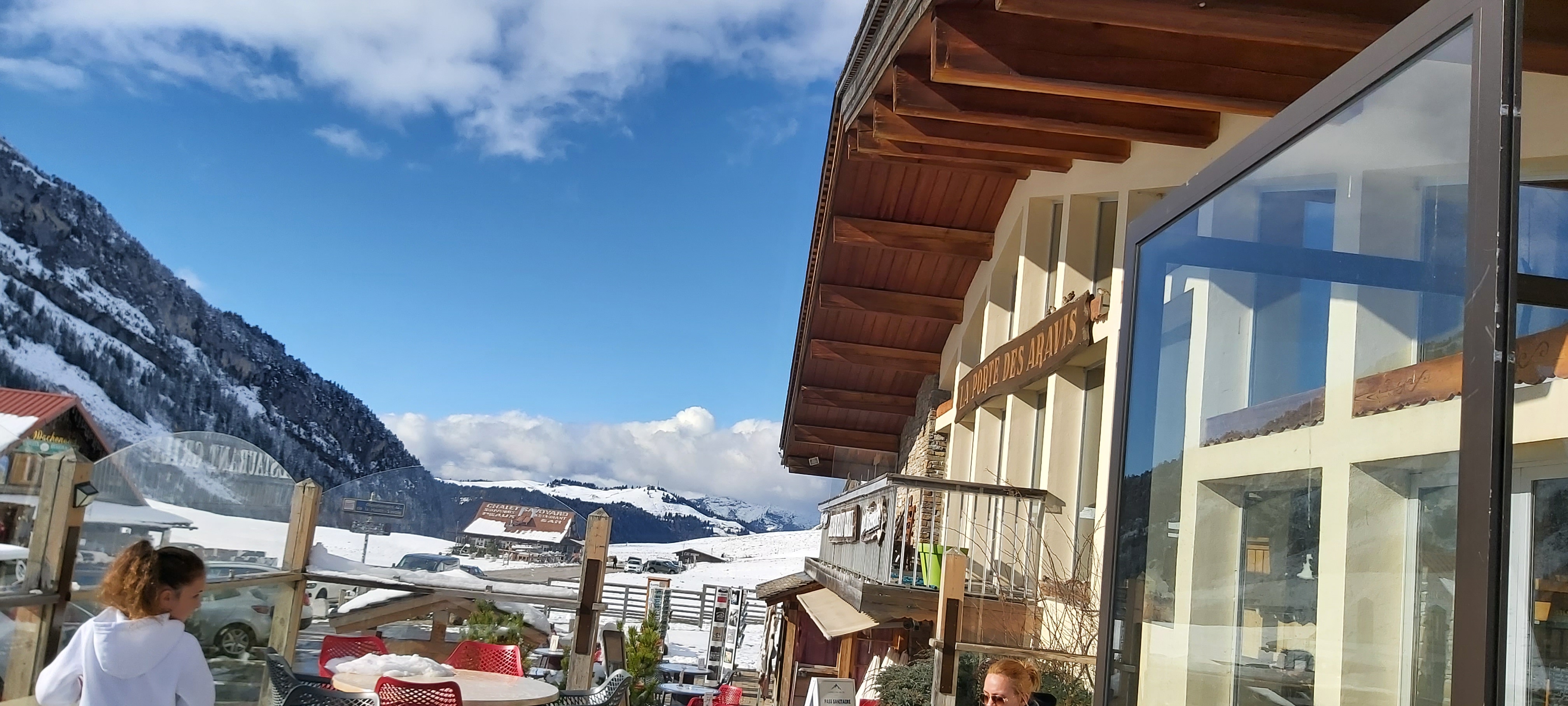 Incontournable si vous venez a La Clusaz ! un passage au Col des Aravis, face au Mont Blanc, en ete comme en hiver est obligatoire ! En cette fin de saison d'hiver, nous avons fait etape ici pour au debut boire juste un Spritz ! Delicieux ! On a craque pour dejeuner avec une salade montagnarde enorme et une truite...un regal ! Mieux vaut reserver a partir de l'ete ! Ca ce passe comme ca a La Clusaz !