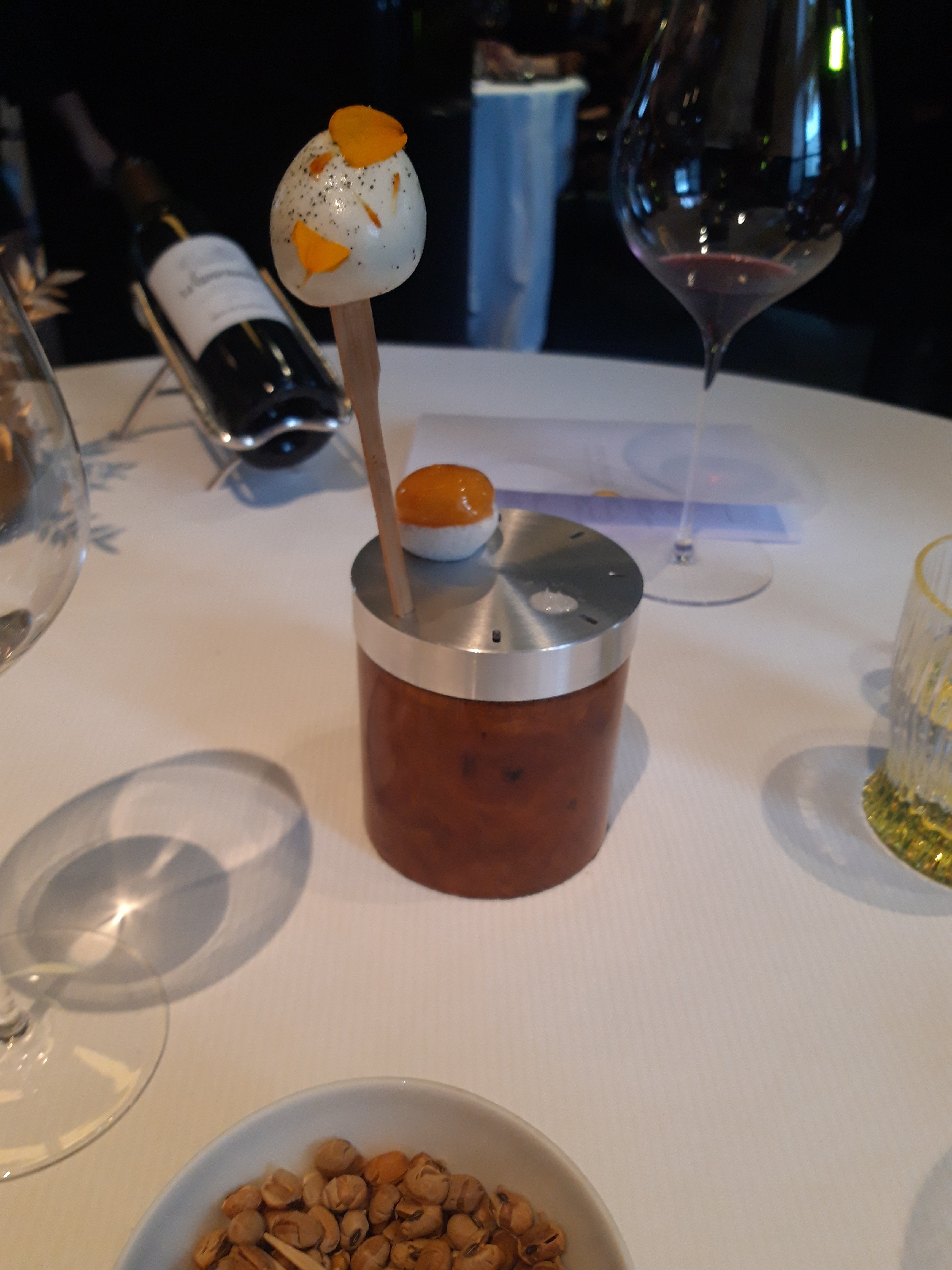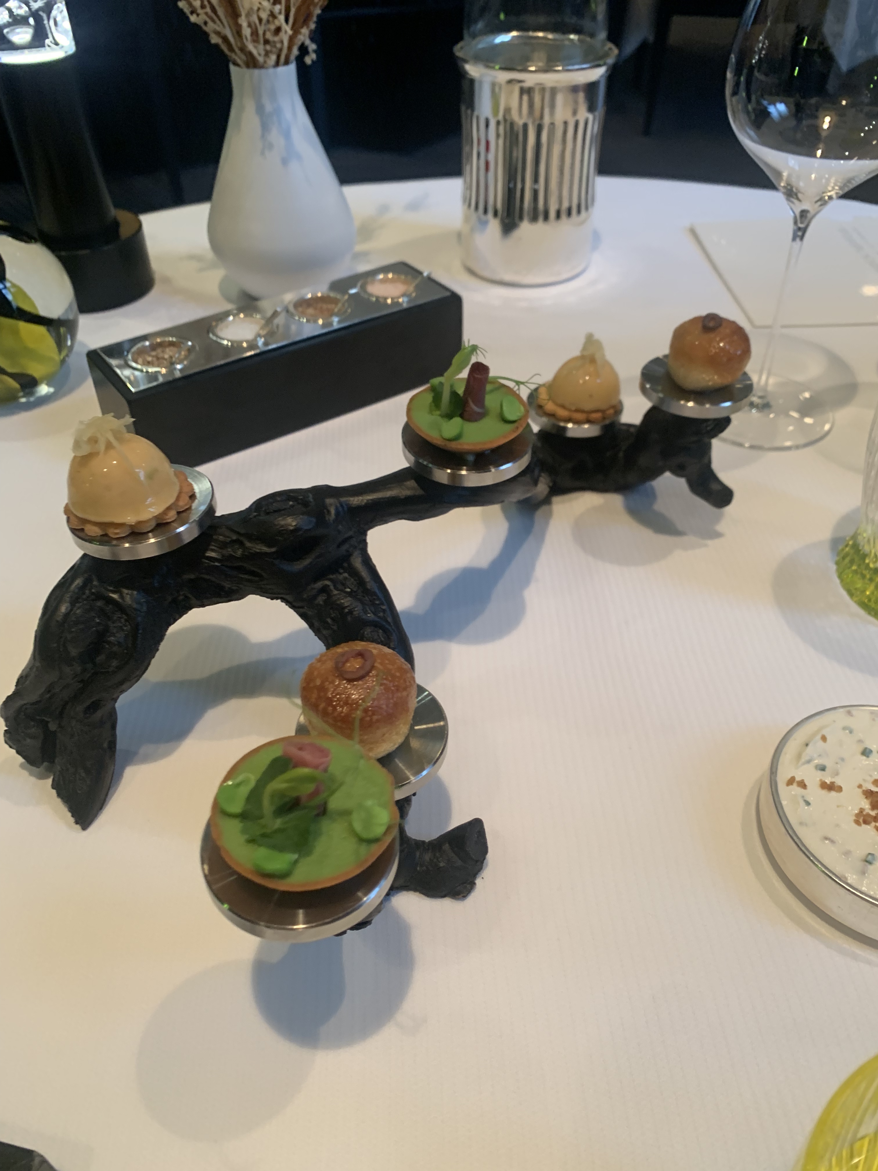 J’adore ce restaurant. Un gastronomique 2 étoiles mais qui vaut bien 3 à mes yeux (et à mes papilles) Cela fait déjà la 4e fois qu’on déjeune (ou dine) dans ce restaurant et c’est toujours le même constat : une cuisine de haut vol menée par un chef qui connaît son affaire, un service très agréable et chaleureux. Une vaisselle d’une élégance folle, dans un décor que j’aime beaucoup. Cet avis, et les photos sont publiés à la suite d’un dîner surprise avec des amis pour mon anniversaire donc mon reportage photos n’est pas vraiment exhaustif !
