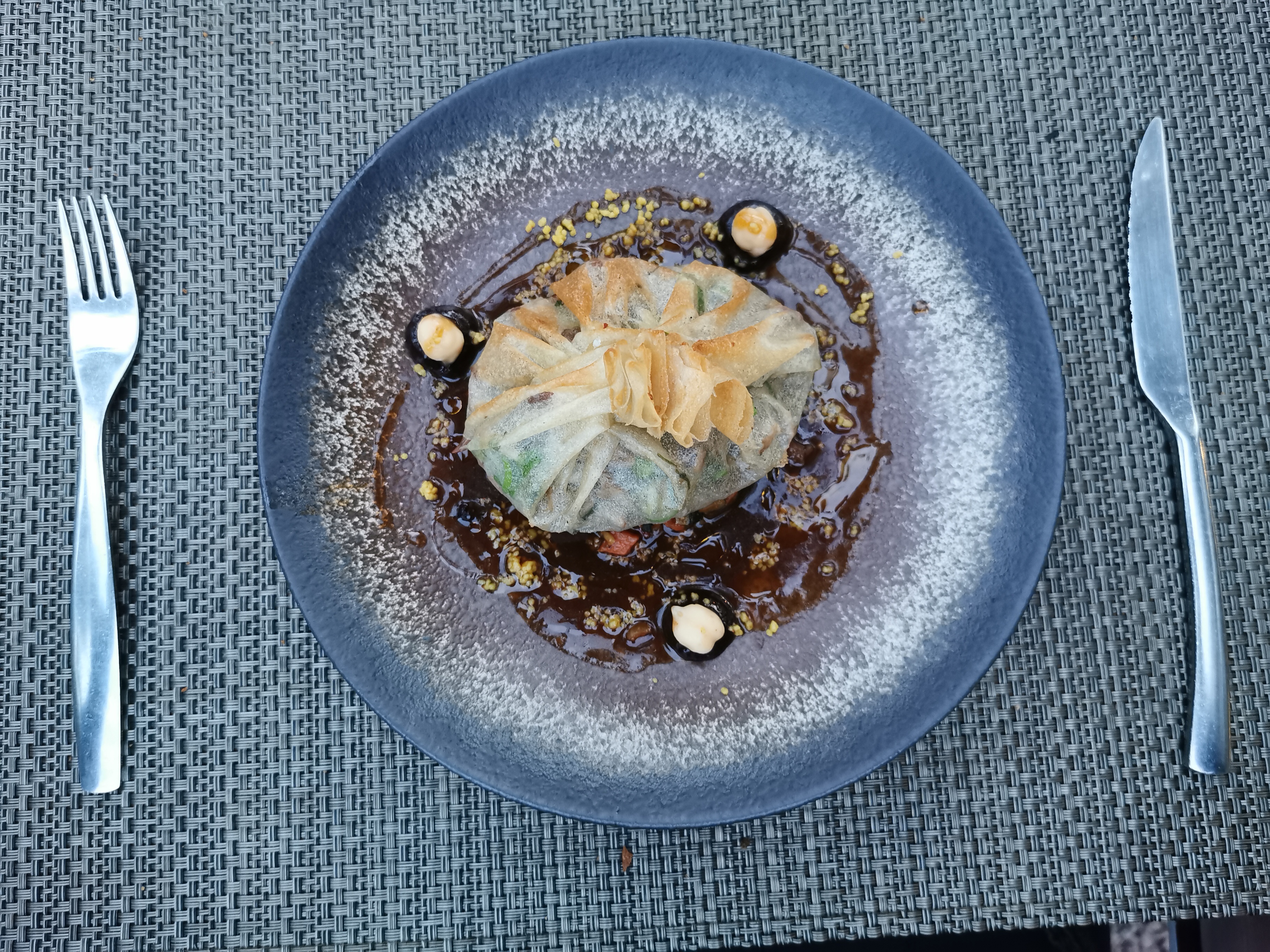 Raffinée dans un cadre très agréable ombragé service impeccable personnelle prévenant et une cuisine au top je le recommande vivement et j'y retournerai avec grand plaisir les mets sont d'exception