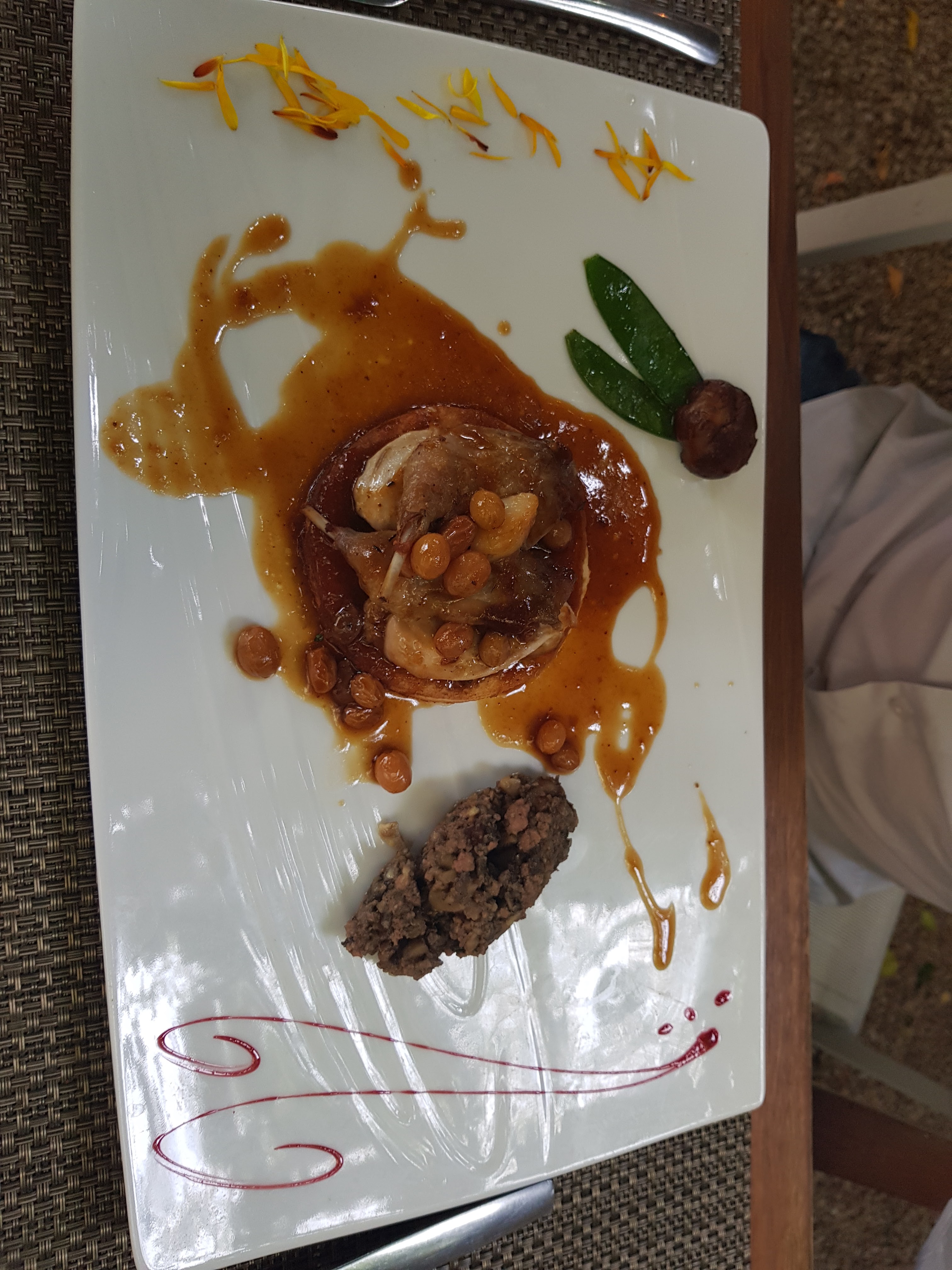 Cadre tout à fait insolite, calme, permettant de profiter d'un excellent repas Présentation parfaite des plats et repas de qualité