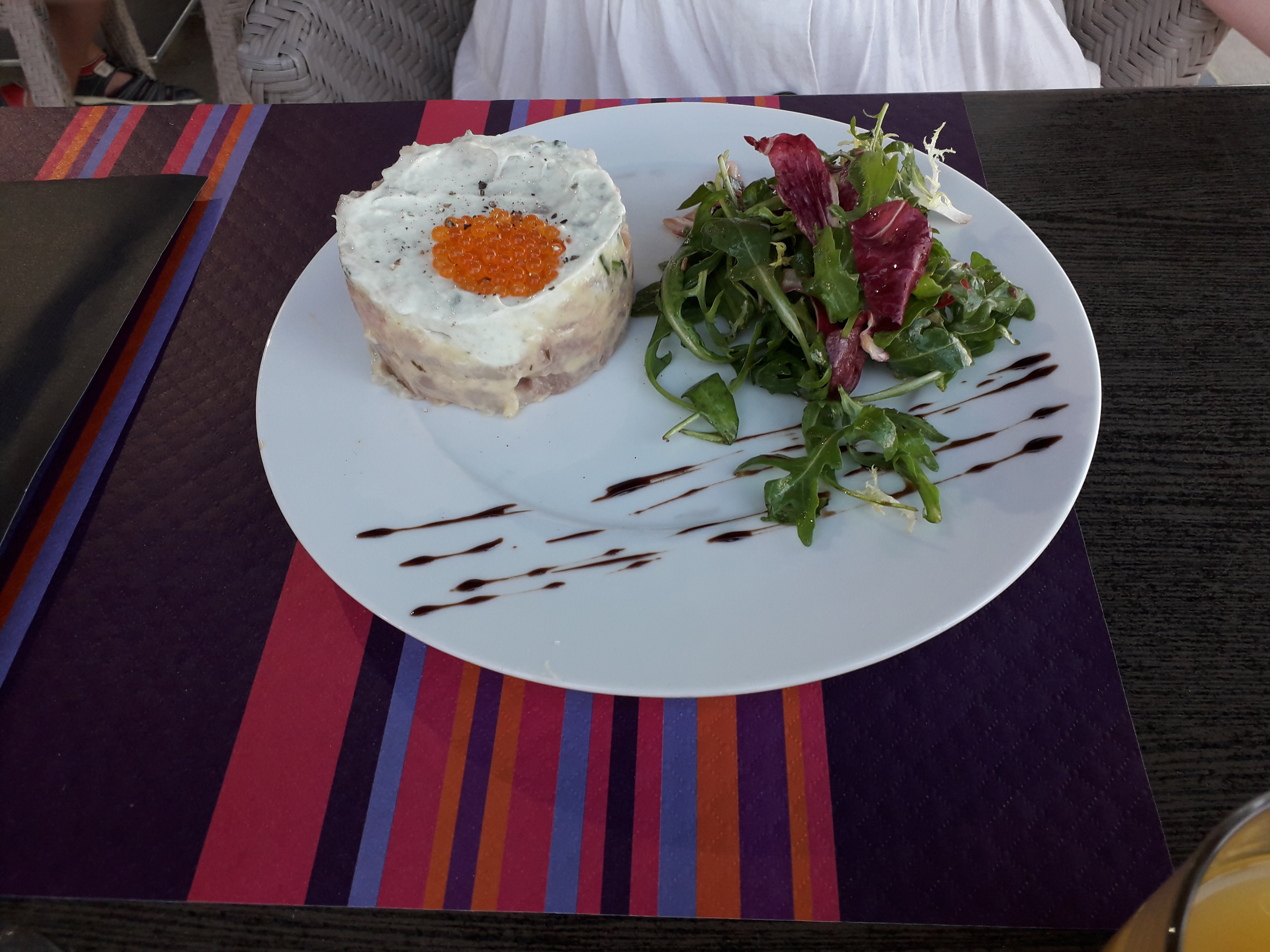 Service agréable et menus très corrects. Table en terrasse ombragée à quelques mètres de la plage.