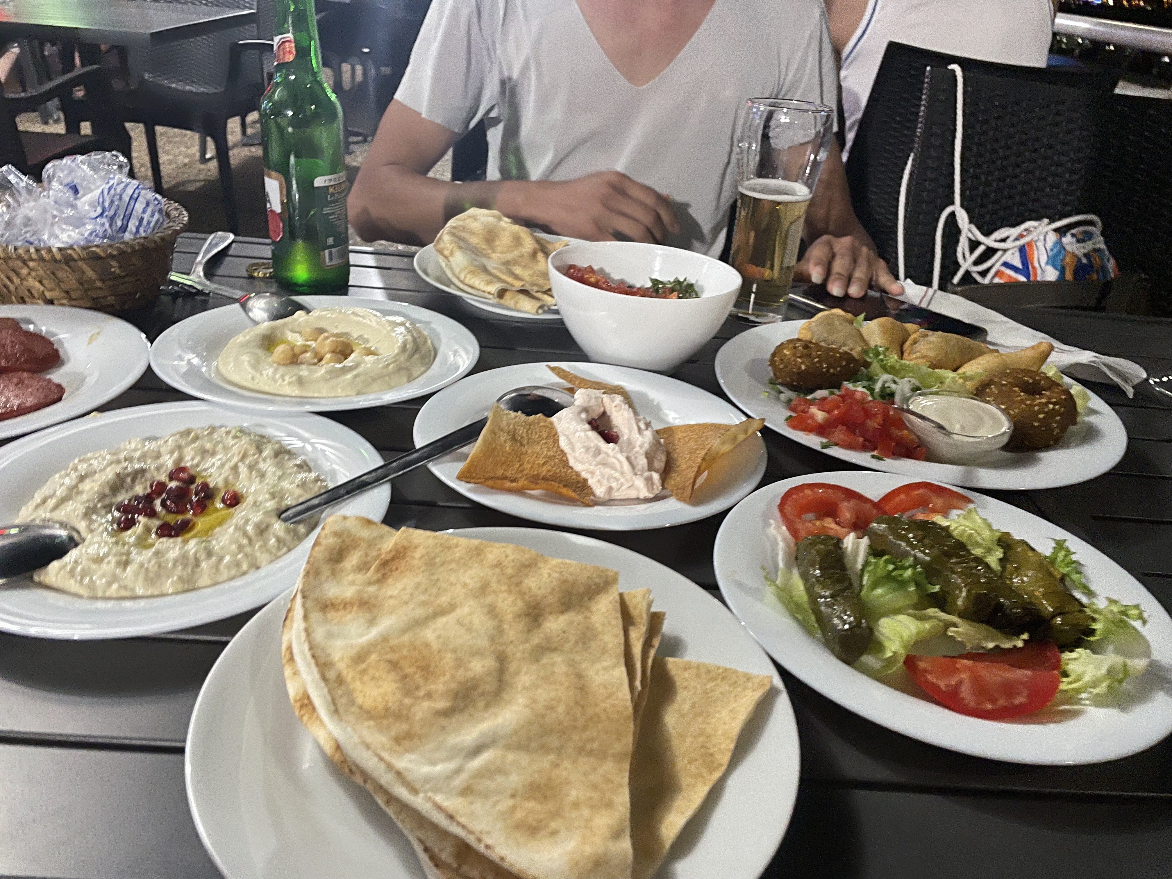 La meilleure cuisine libanaise, tous les plats sont très bon, tarama, houmous,caviar d'aubergine,chawarma ... l'accueil est chaleureux, et une super vue sur le couché du soleil.