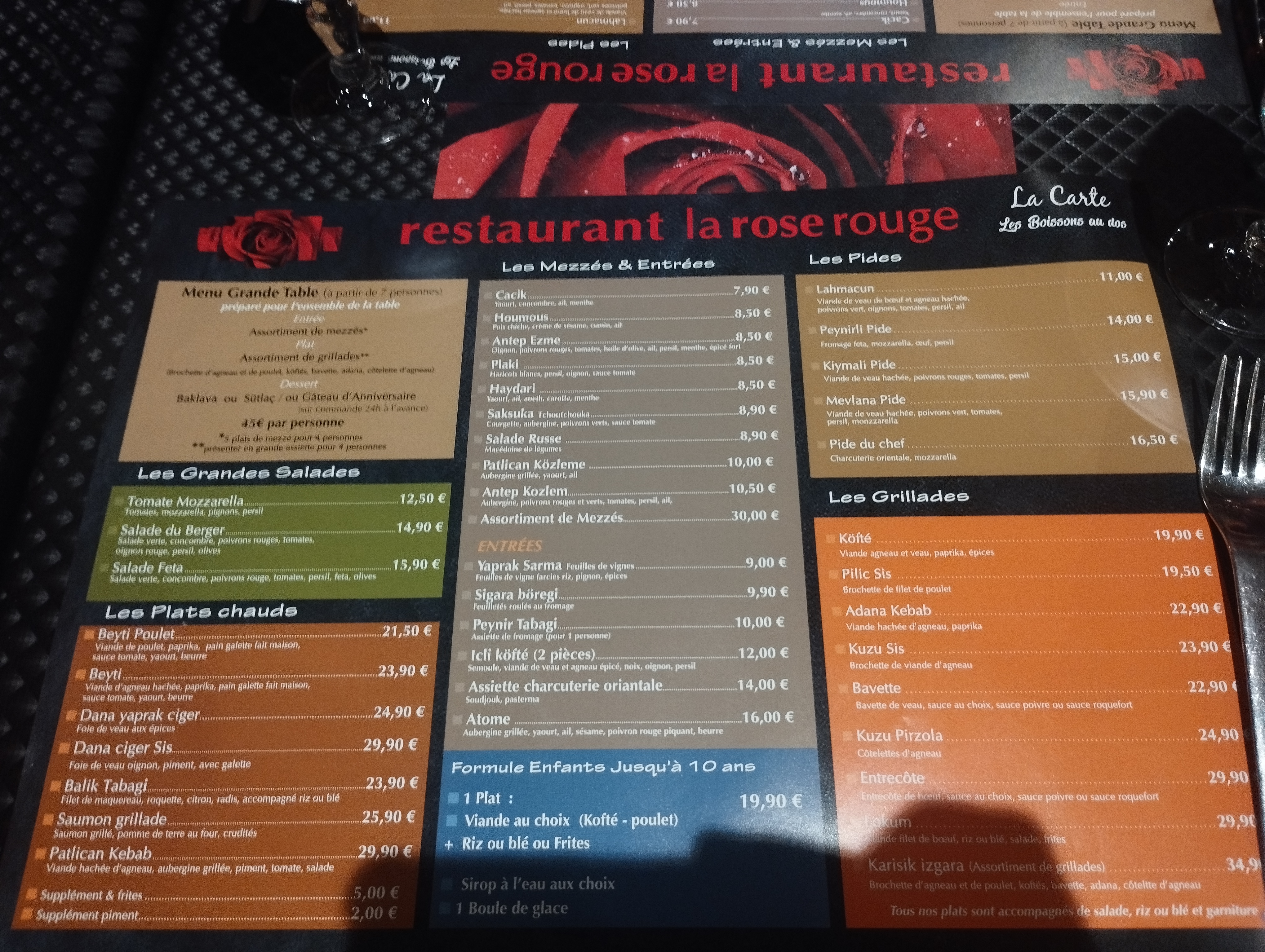 Je recommande fortement ce restaurant si vous souhaitez manger des spécialités turcs, les plats sont savoureux et maîtrisés. Je vois recommande le lahmacun ainsi que la bavette de veau, les cuissons de viande sont parfaites ! Merci la Rose rouge !