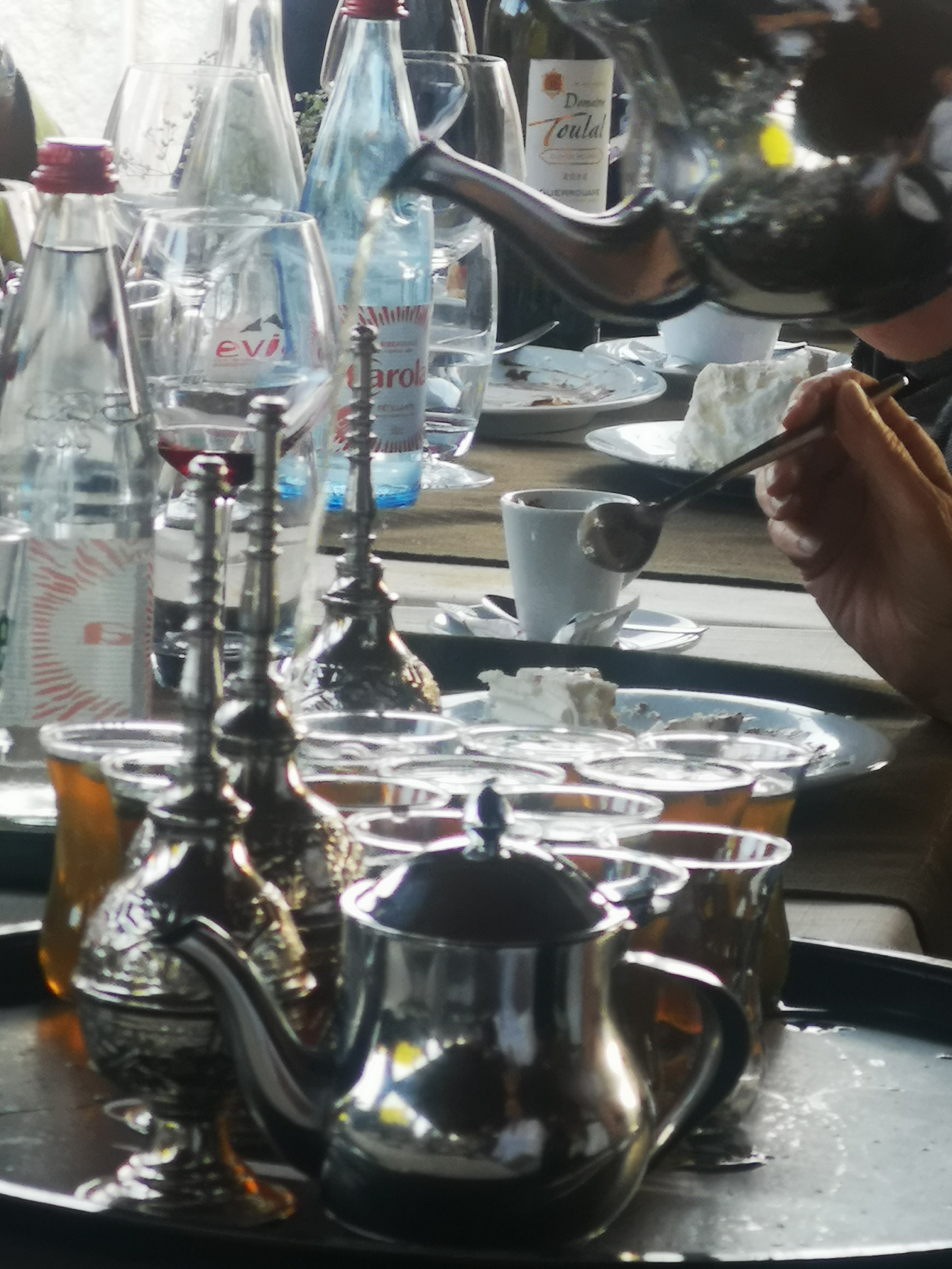 Véranda réservée pour un évènement... J'ai beaucoup aimé le couscous, pleins d'épices et de bonnes brochettes de boeuf. Le service est à revoir : pas de sourire, stressé et une certaine froideur. Concernant le rapport qualité/prix, c'est trop cher. Côté commercial --> efforts à réaliser...quand une personne du groupe deplace ses couverts et qu'une part en plus est comptée....et quand un enfant prend une assiette de semoule (sèche) et que le service souhaite le faire payer... Il a fallu demander et s'expliquer pour ne pas avoir à régler de suppléments, c'est DOMMAGE