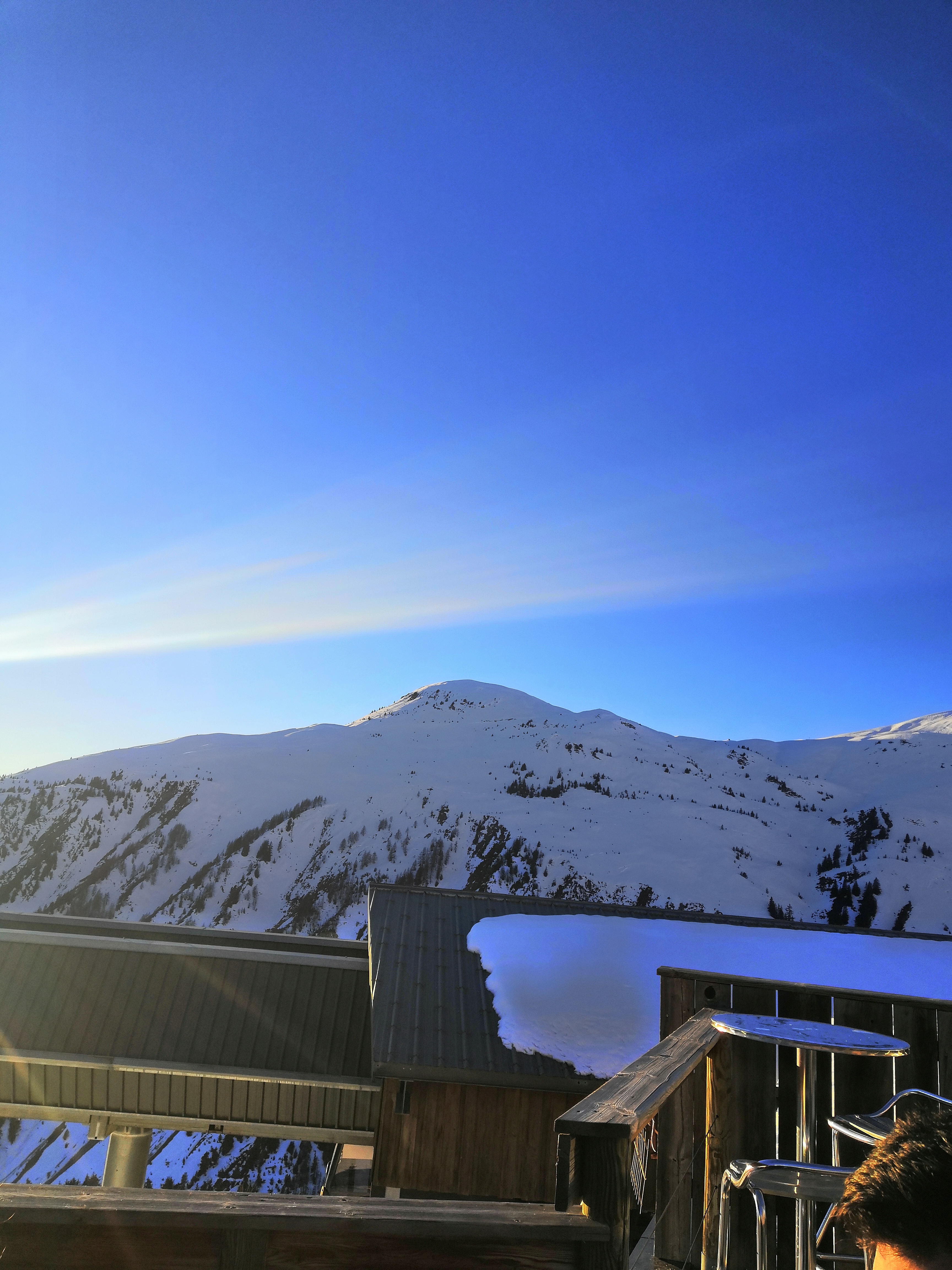Cadre idéal pour prendre une bière à la fin d'une journée de ski, assis au soleil avec une vue fabuleuse sur les montagnes.