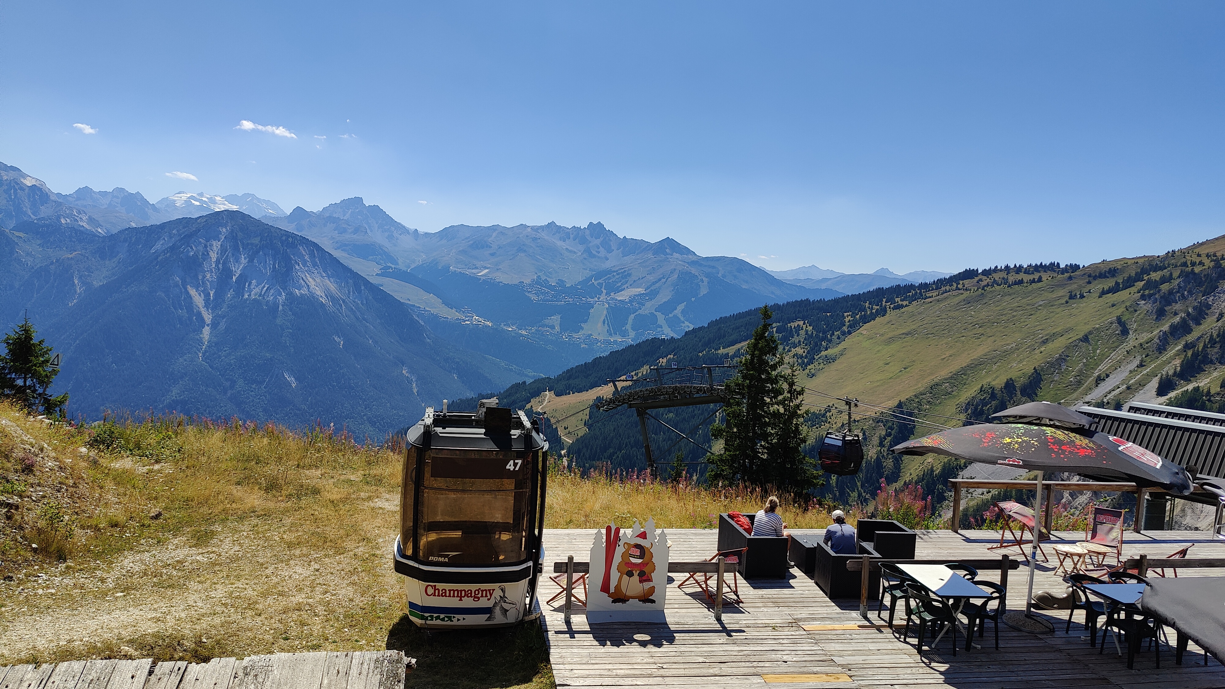 Bien placé après la remontee de champagny. Une belle vue et une jolie terasse avec des transat.