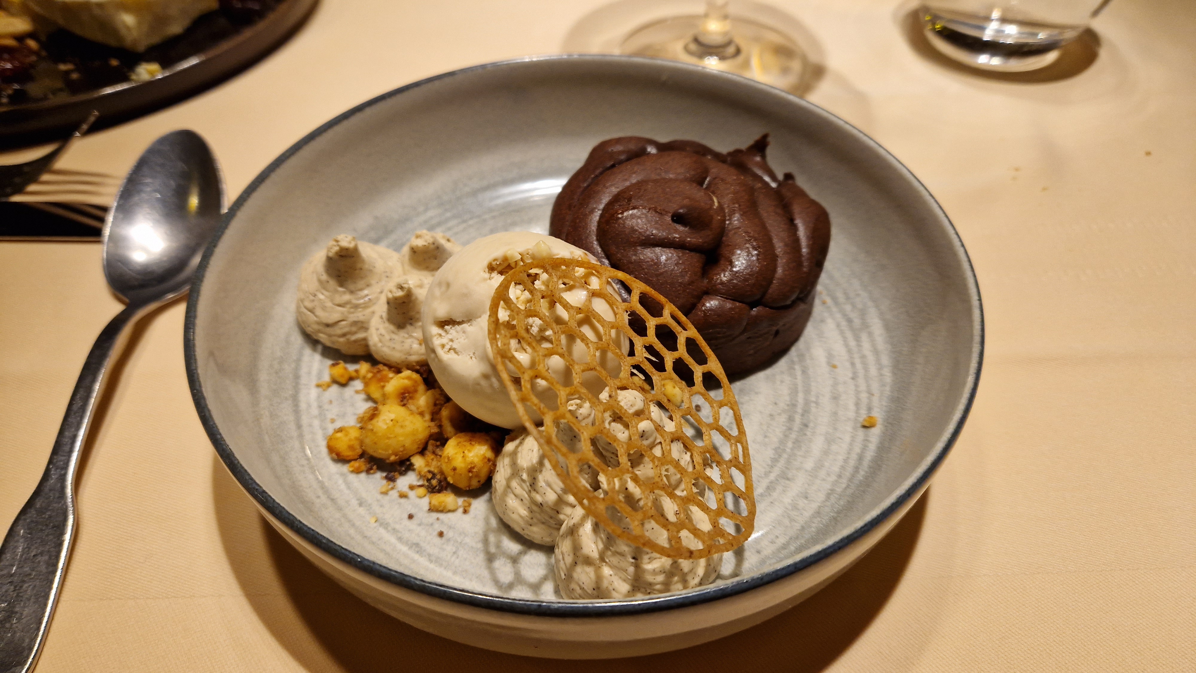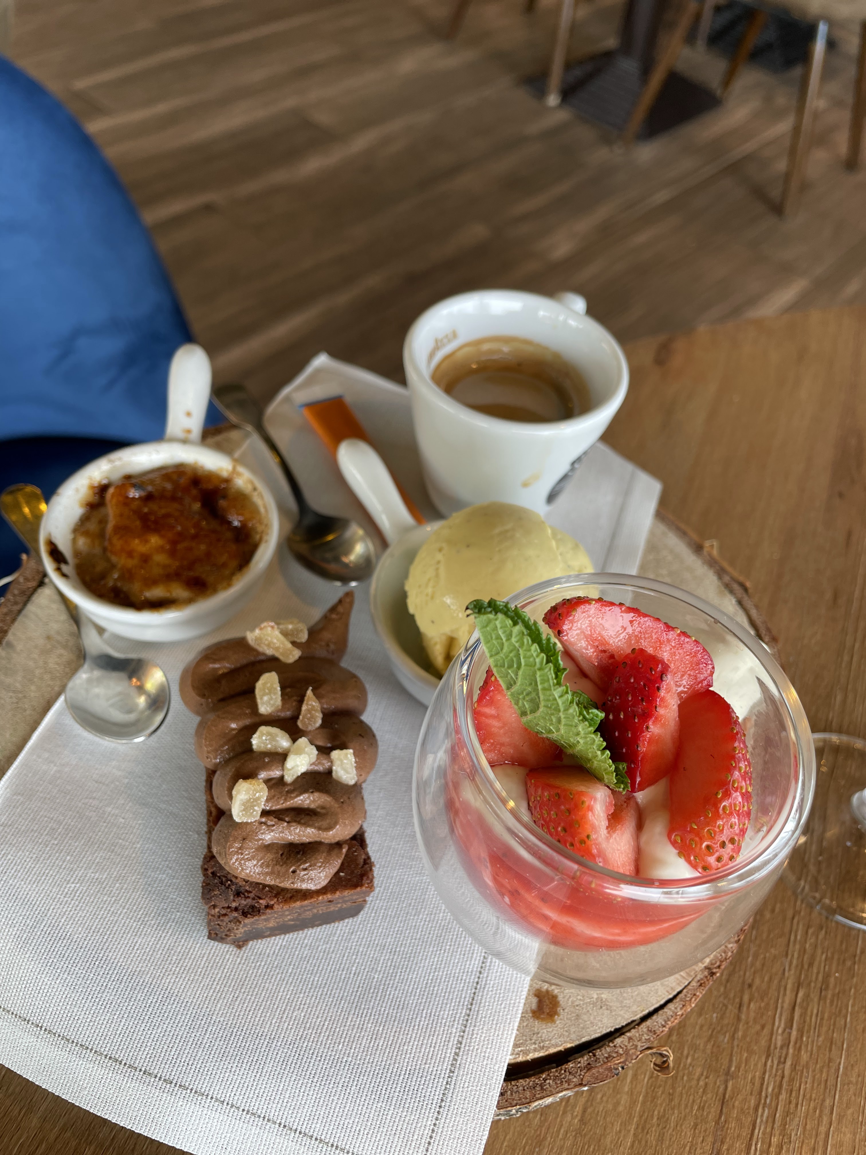 Une belle découverte .Des plats délicieux,,des entrées savoureuses ,une assiette de fromages et un dessert qui concluent magnifiquement le repas . La décoration et la vaisselle sont à l’image du lieu ,élégants. Nous recommandons !