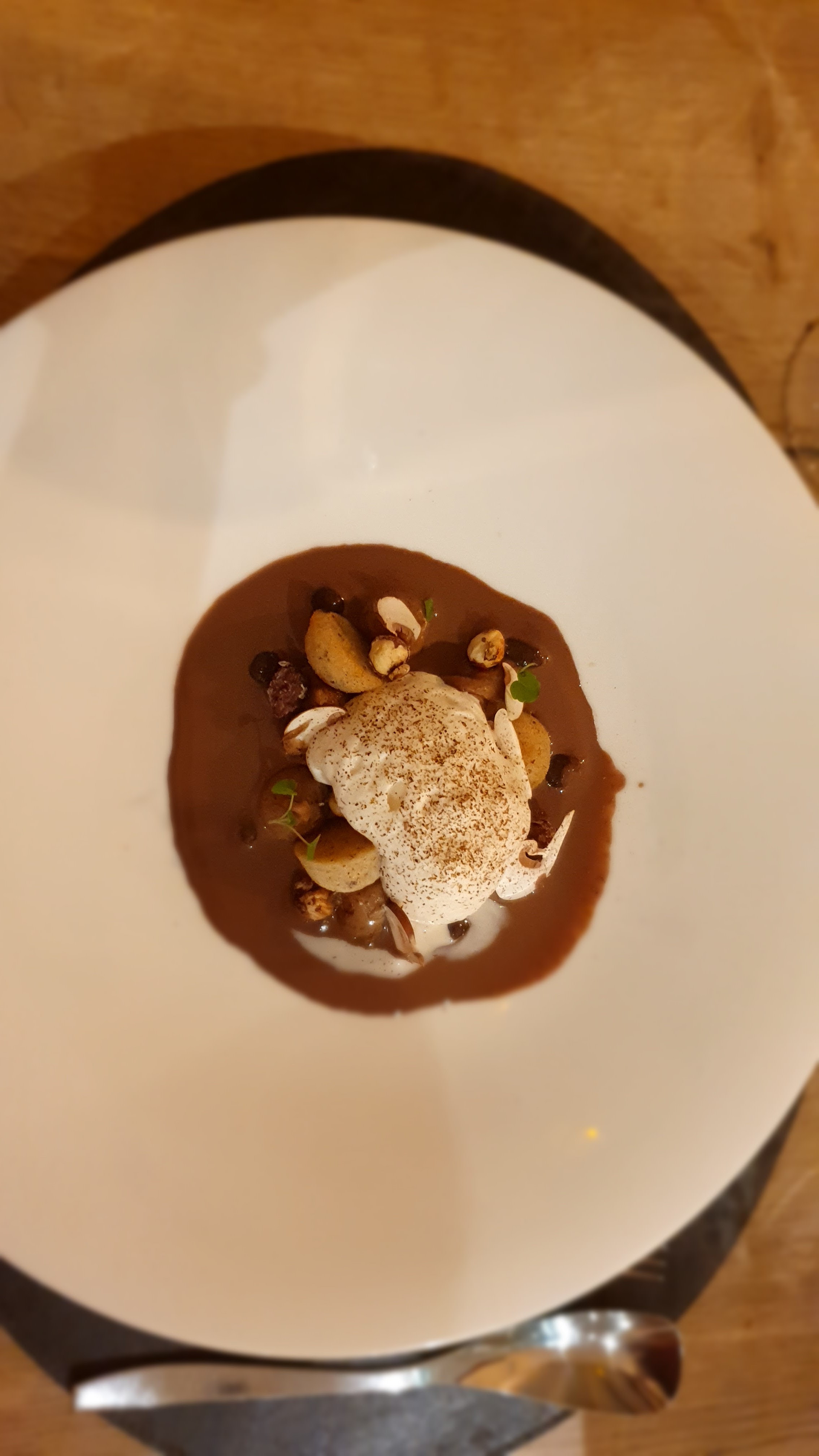 Étrange...repas basic et pas très surprenant... On a mangé le plat principal froid et le contenu était perdu dans cette grande assiette..il ne faut pas être un gros mangeur. Le dessert ...un grand bazar de mélange chocolat sablé...pas très harmonieux... 35€ le menu ...franchement ça vaut pas ce prix là. Dommage
