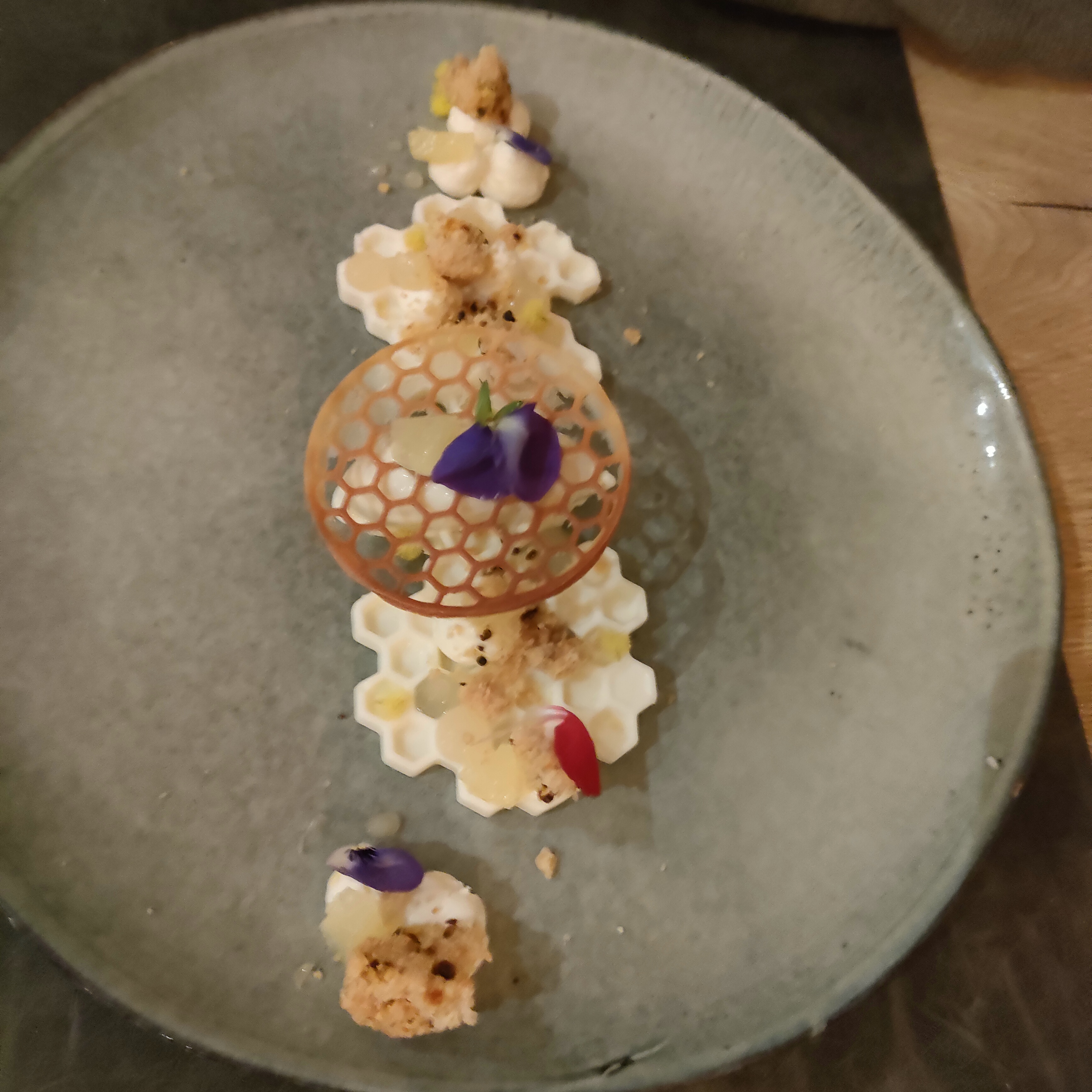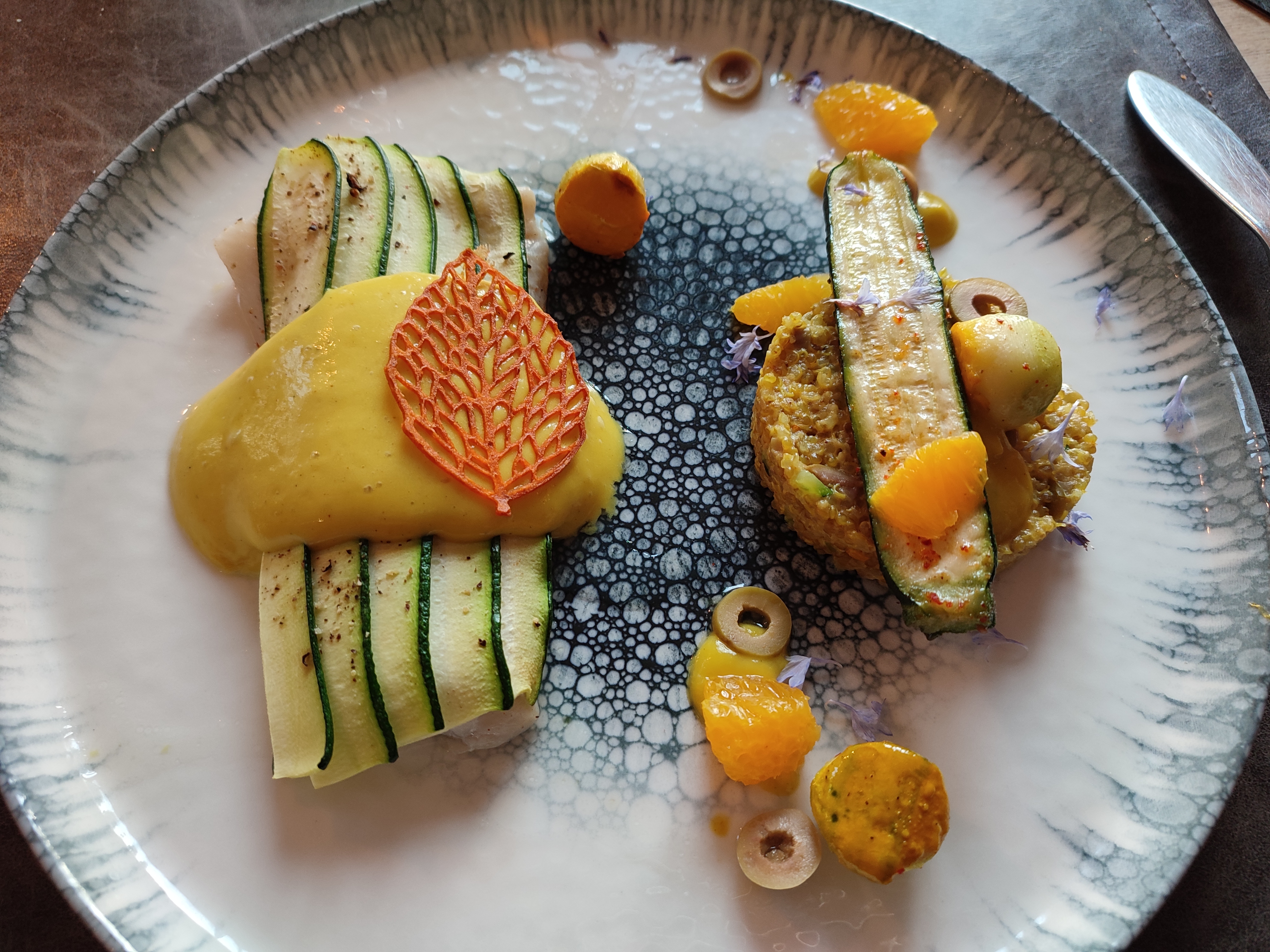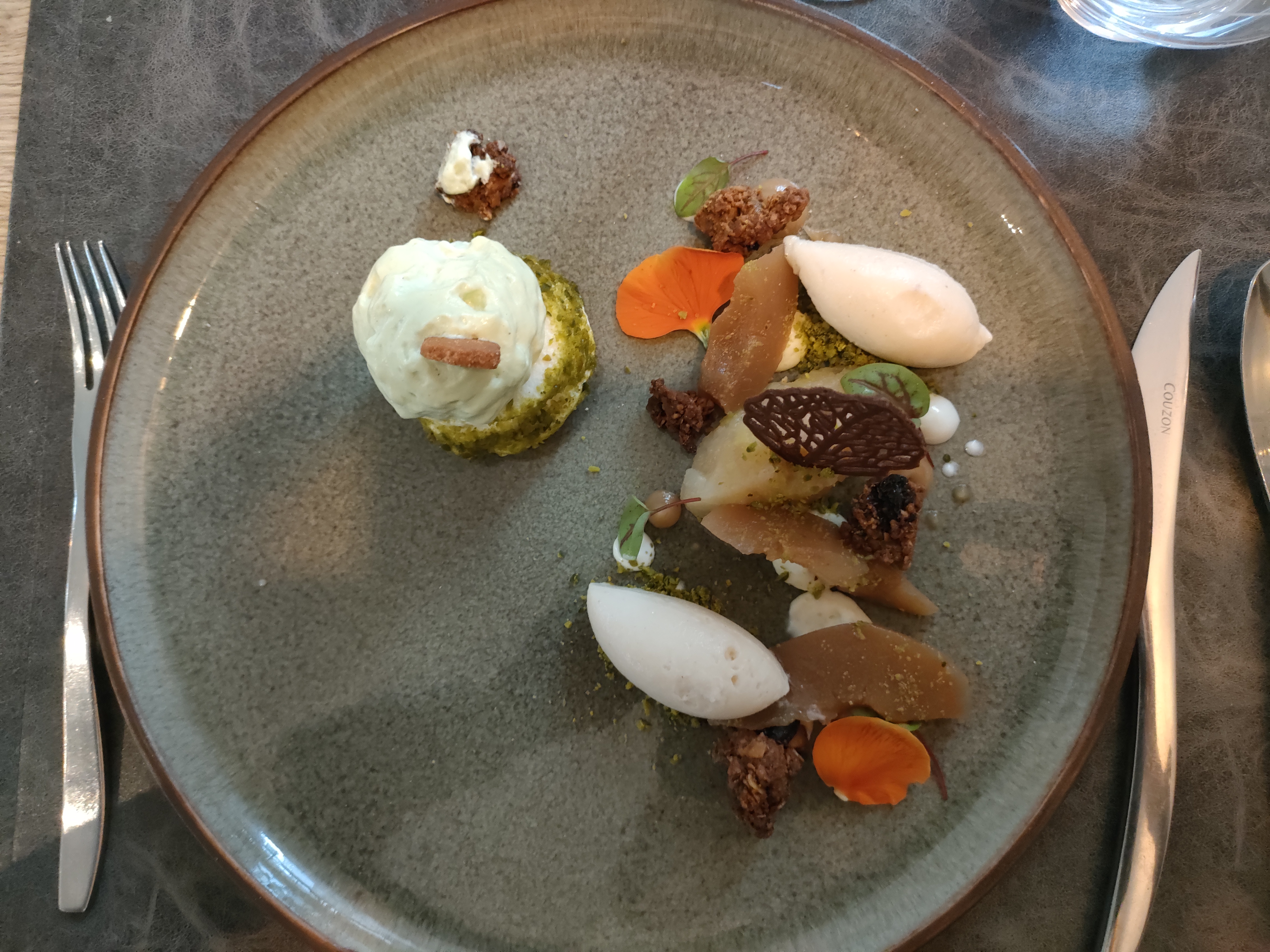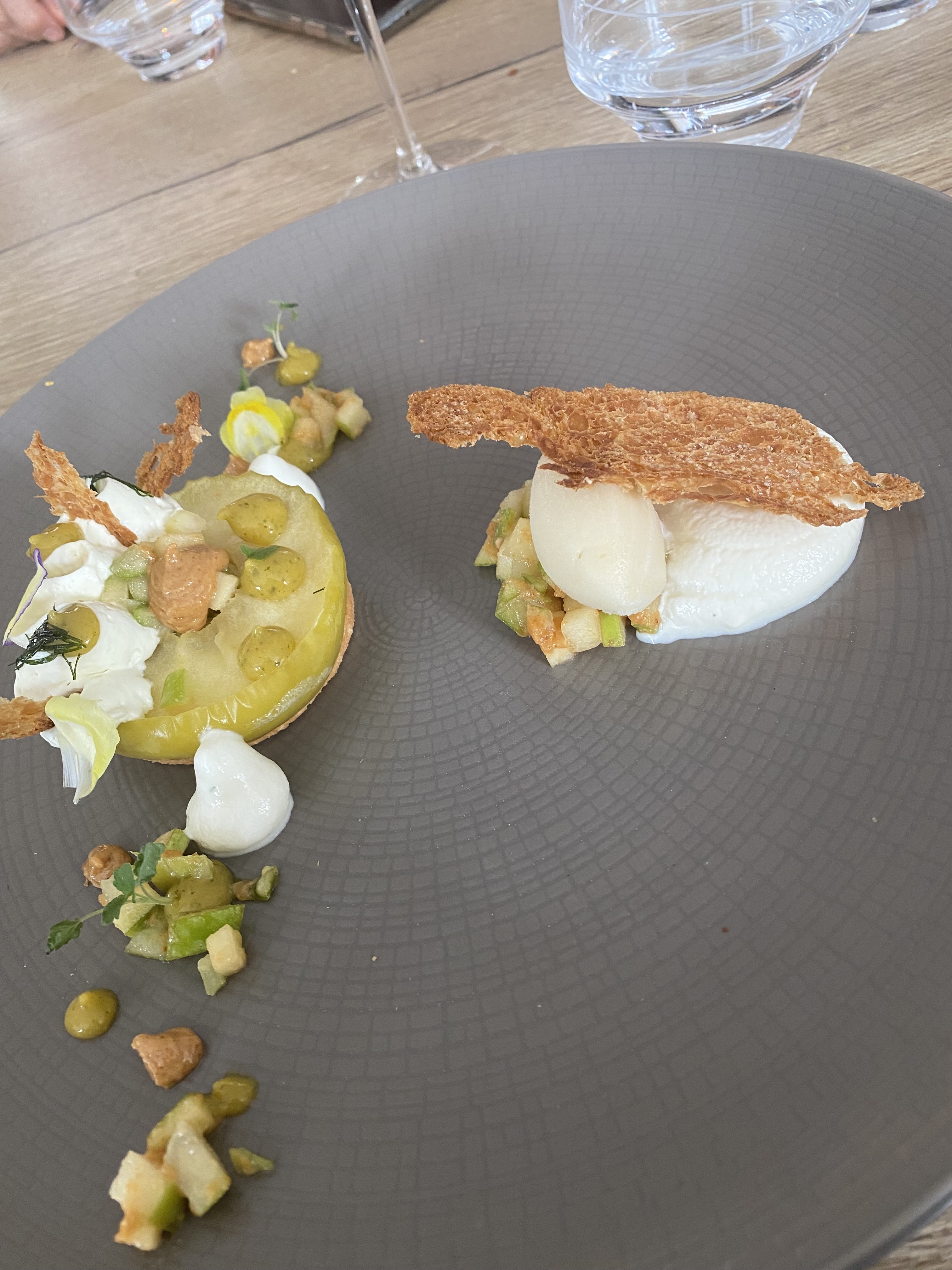 Repas de très bonne qualité avec des produits locaux une cheffe au top dans ses plats aussi gourmand par la présentation que par ses saveurs services impeccable je recommande vivement