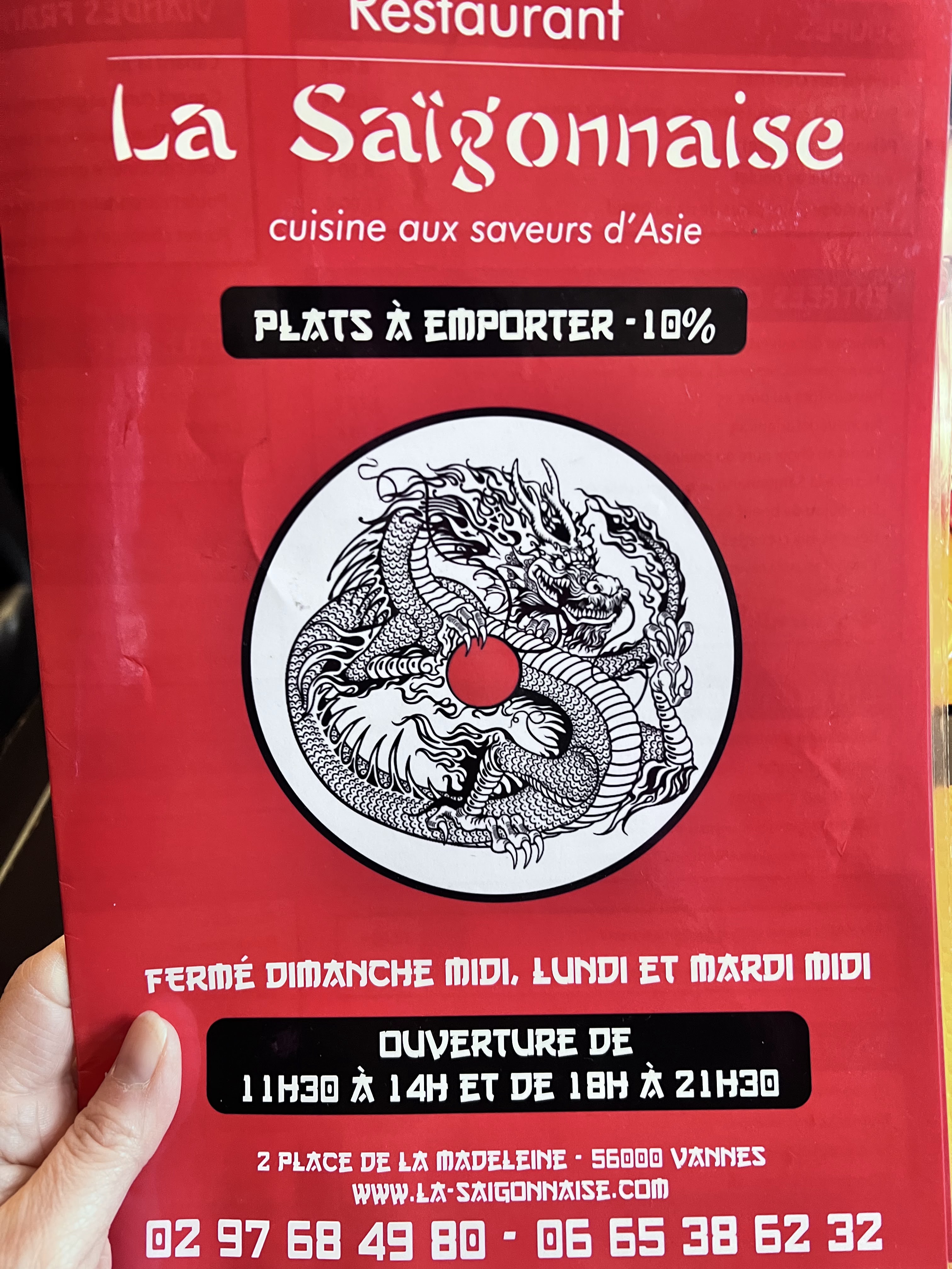 C’est la deuxième fois que nous venons la première fois était spéciale car nous étions venu avec un apriori mais cette seconde fois confirme que ce restaurant respecte tout de la magnifique cuisine asiatique un service très convivial et un accueil comme si vous faisiez parti de la famille ! Des saveurs à vous donnez des frissons dans les papilles ! Nous recommandons vivement ce restaurant qui n’a pas besoin de nous pour faire sa belle réputation qu’il a à vannes ! Merci la saigonaise