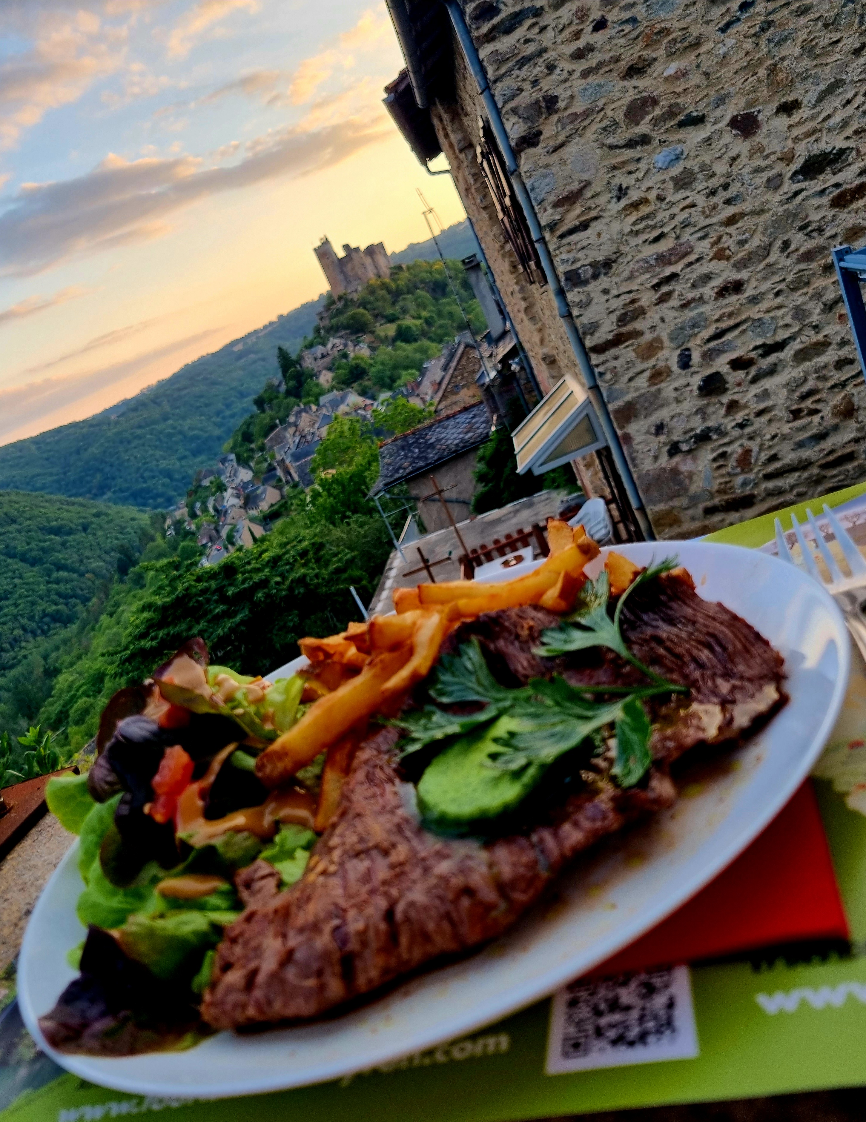 Belle découverte avec une belle vue de la forteresse de najac de la terrasse, des bons plats de la région, une serveuse souriante et agréable que demander de plus.