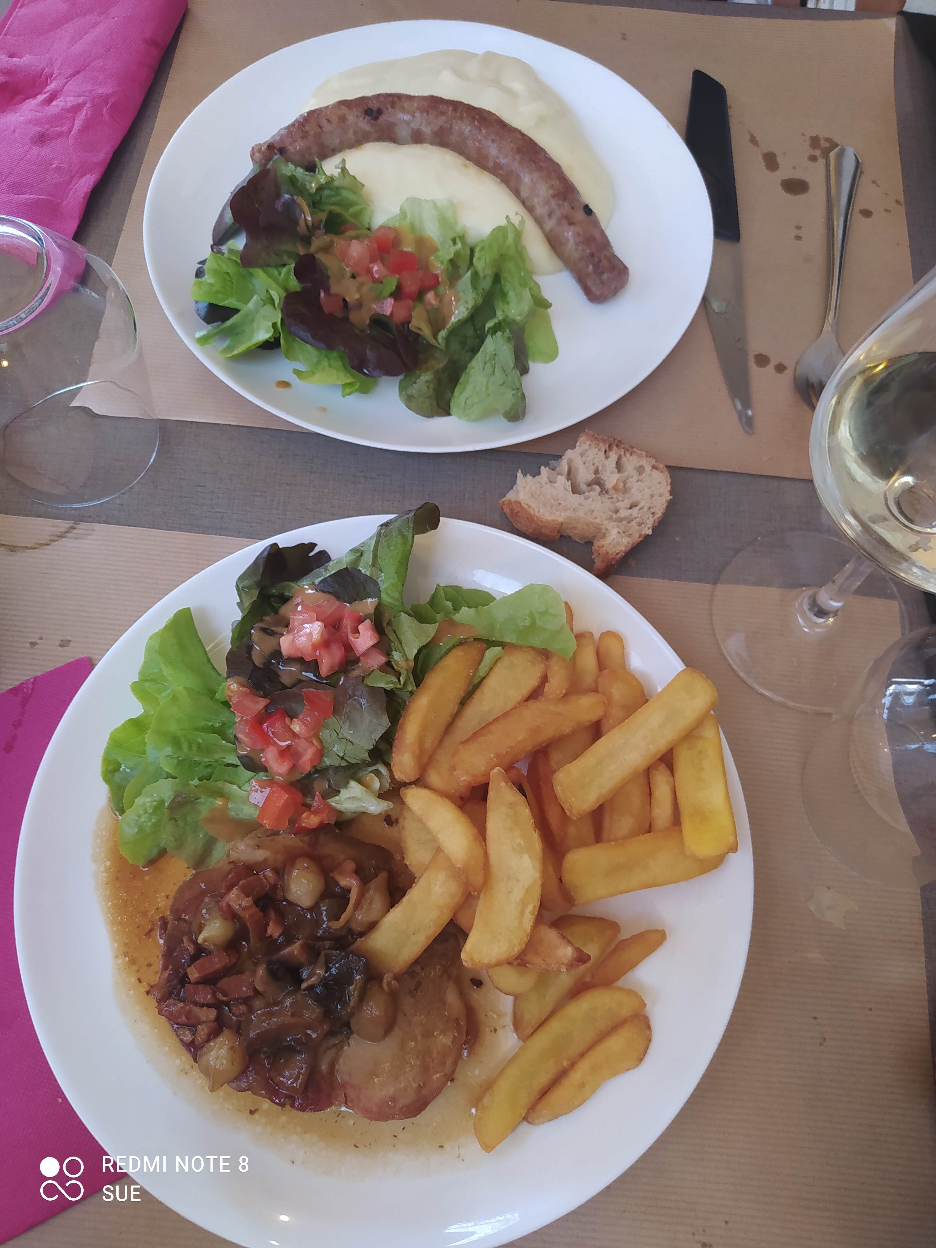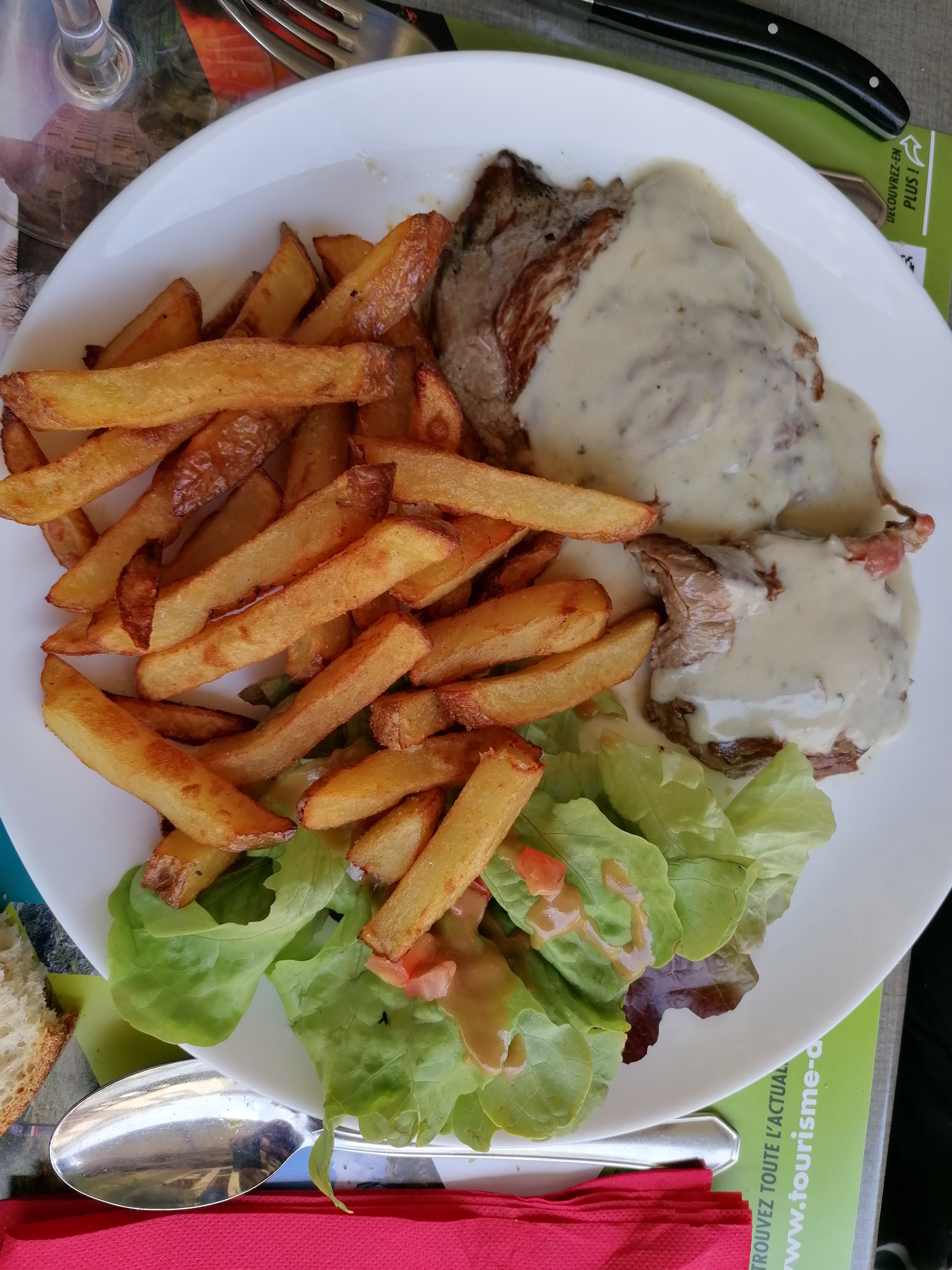 Repas pris sur la terrasse avec belle vue sur le château illuminé le soir, les assiettes sont aussi copieuses que bonnes, pour un menu a 19€je recommande! De plus la jeune serveuse est très sympathique, nous avons passé un très bon moment
