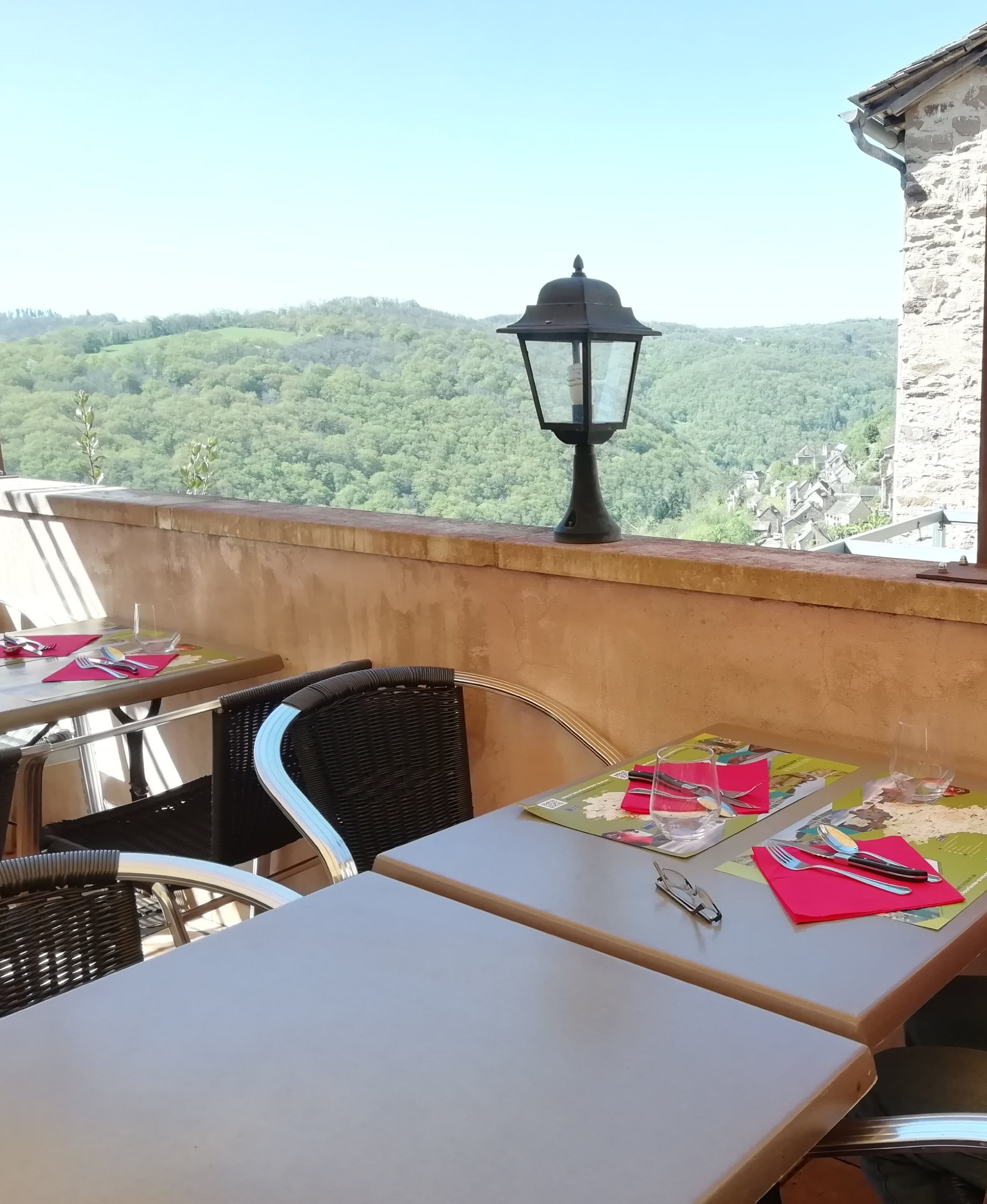 Le restaurant de la Salamandre à NAJAC propose une terrasse panoramique certes limitée mais très agréable. Accueil chaleureux, rapport qualité/prix au rdv (menu à 19€). Ne manquez pas l'excellent astet najacois (roti de porc constitué de longe, de filet mignon et de sa persillade). Une petite balade vers le château vous permettra d'éliminer le copieux repas.