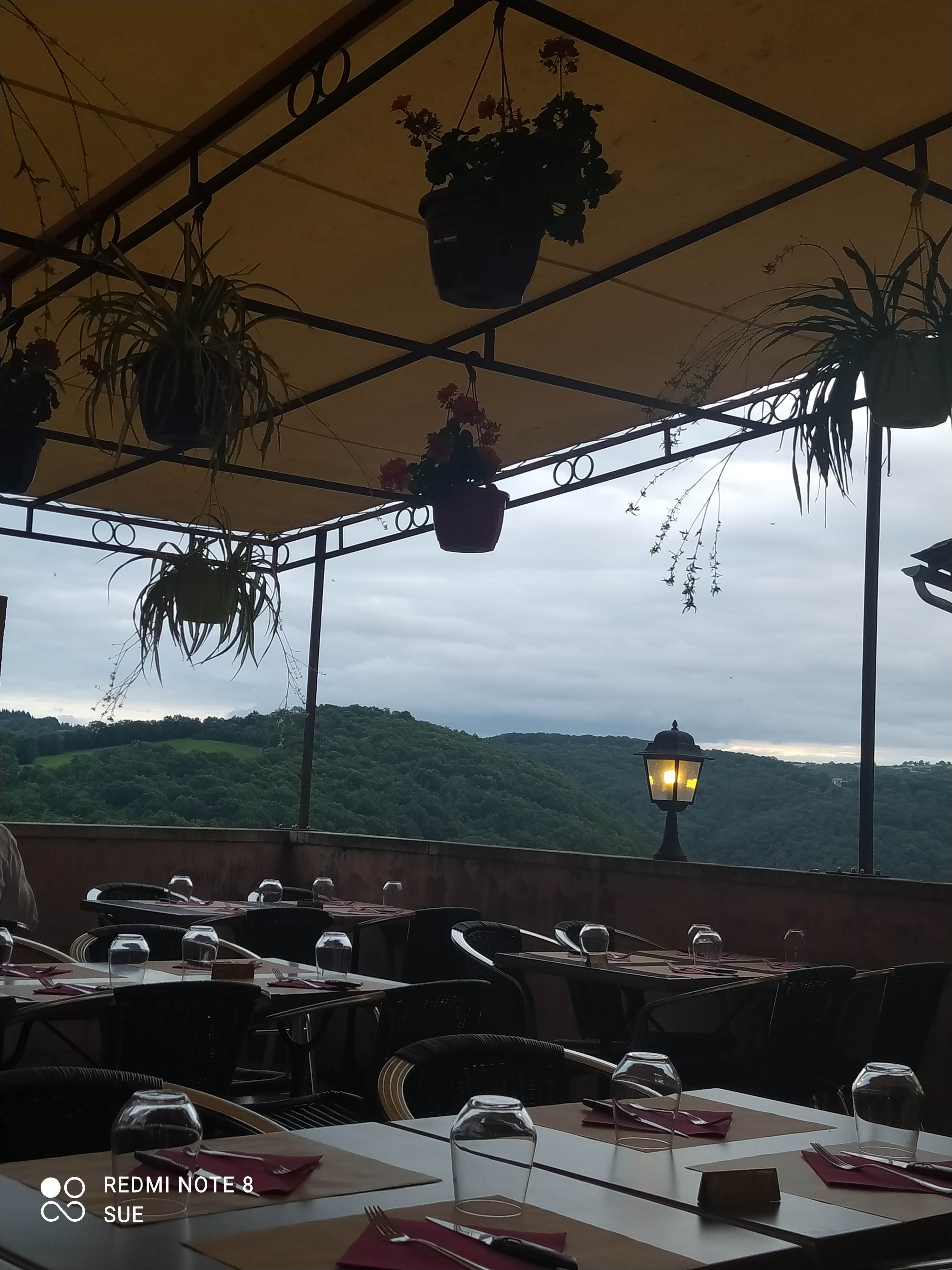 Tres accueillant, depuis la terrasse vue sur le château de Najac. Tres bonne cuisine, copieux.