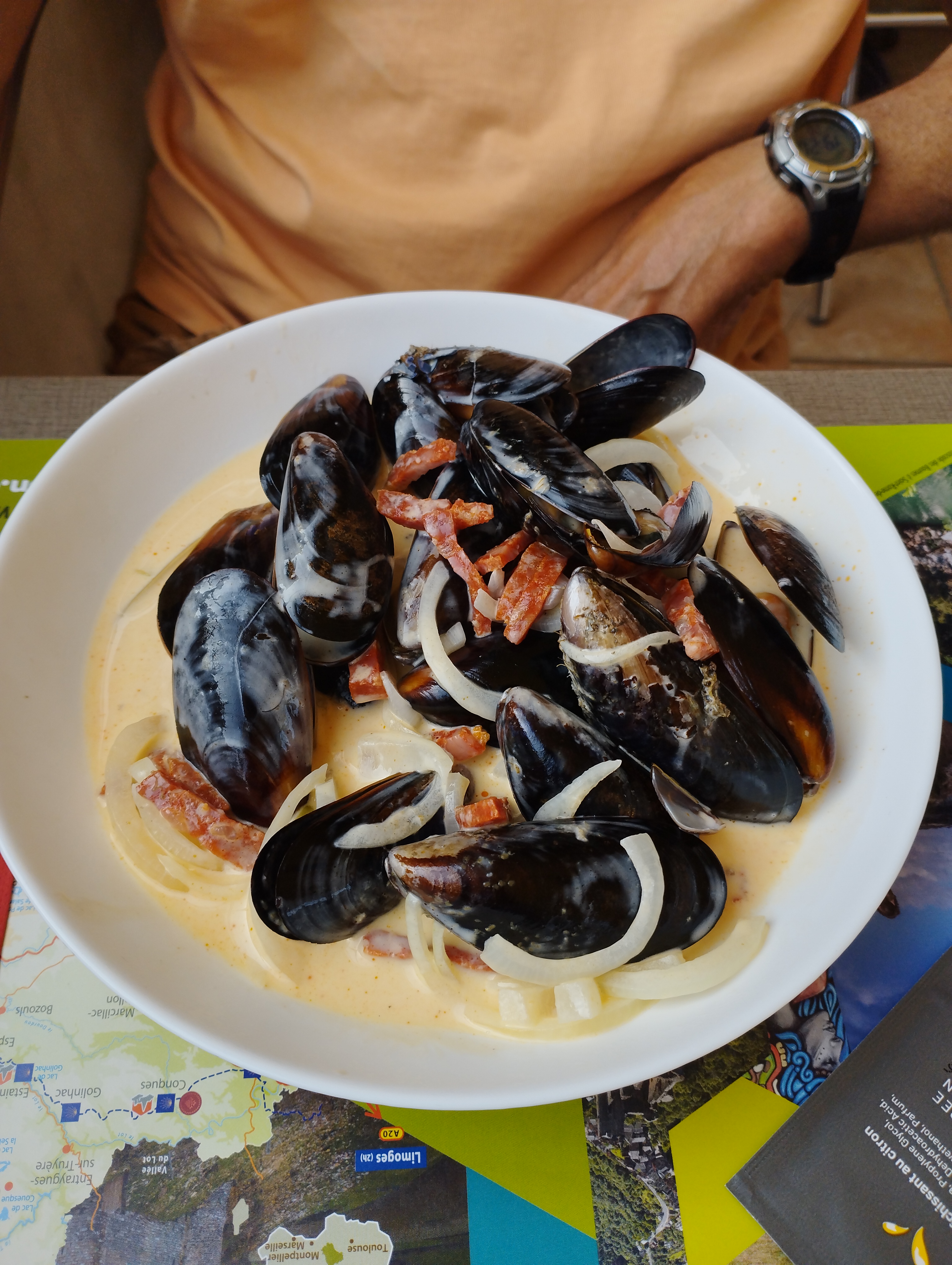 Nous sommes en train de manger.les moules au chorizo:un régal. L accueil est au top.les 2 serveuses sont adorables.la terrasse est très agréable. BiEn accueilli avec notre coker..On s y sent très très bien.