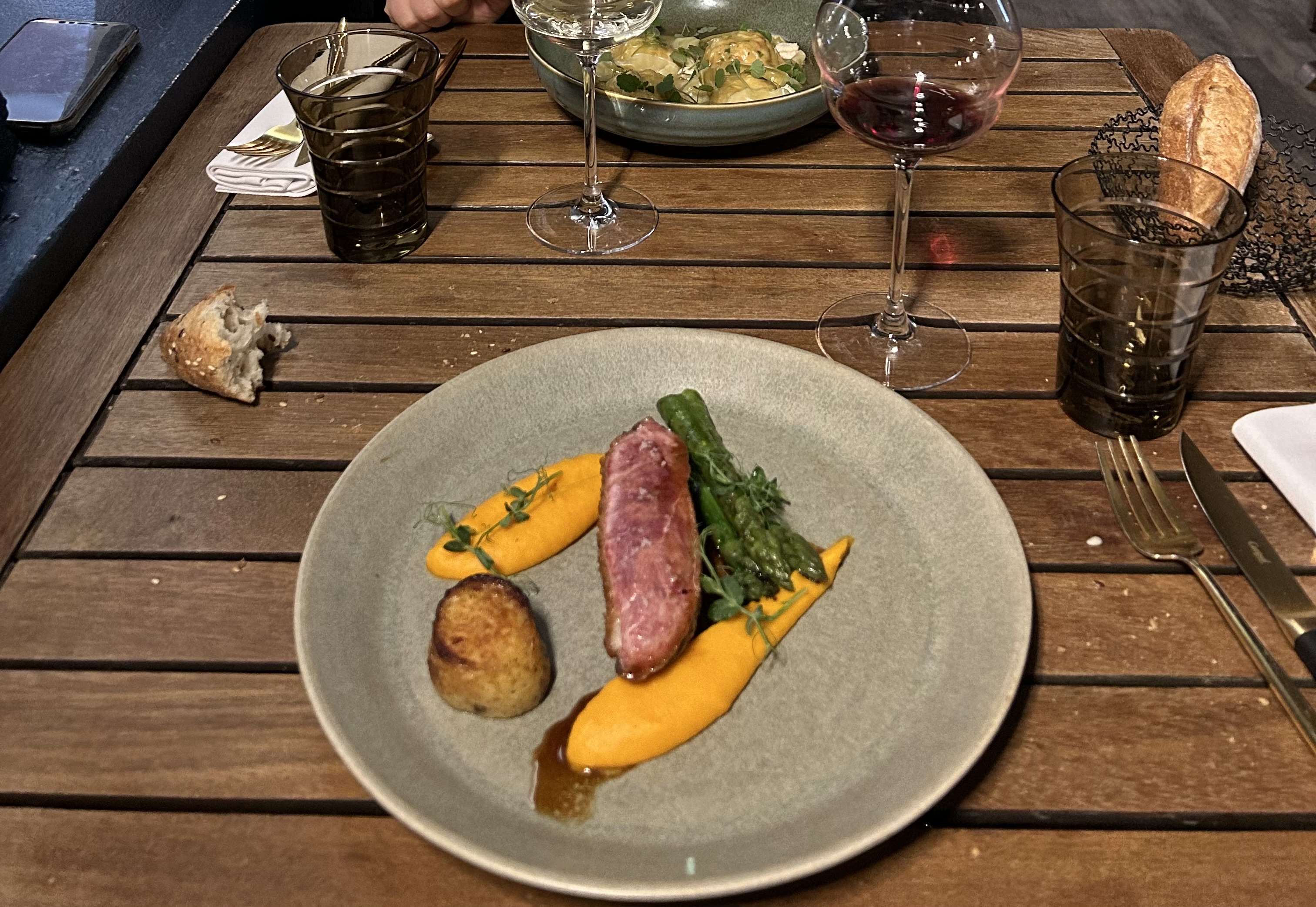 Accueil fortement agréable, et échanges fort sympathiques avec le personnel. Nous étions en terrasse où le cadre était agréable et calme, Concernant les plats, il étaient, de l’entrée au dessert, succulents, rien à redire, autant sur la cuisson de la viande rouge, que du poisson, qui étaient tendre et fondant en bouche. L’assaisonnement parfait, rien a ajouter. Le sommelier a prit le soin de nous conseiller un vin excellent, et tout à fait adapté à notre demande. Très belle découverte. Belle trouvaille, c’était notre première fois, Une chose est sûr, nous reviendront !