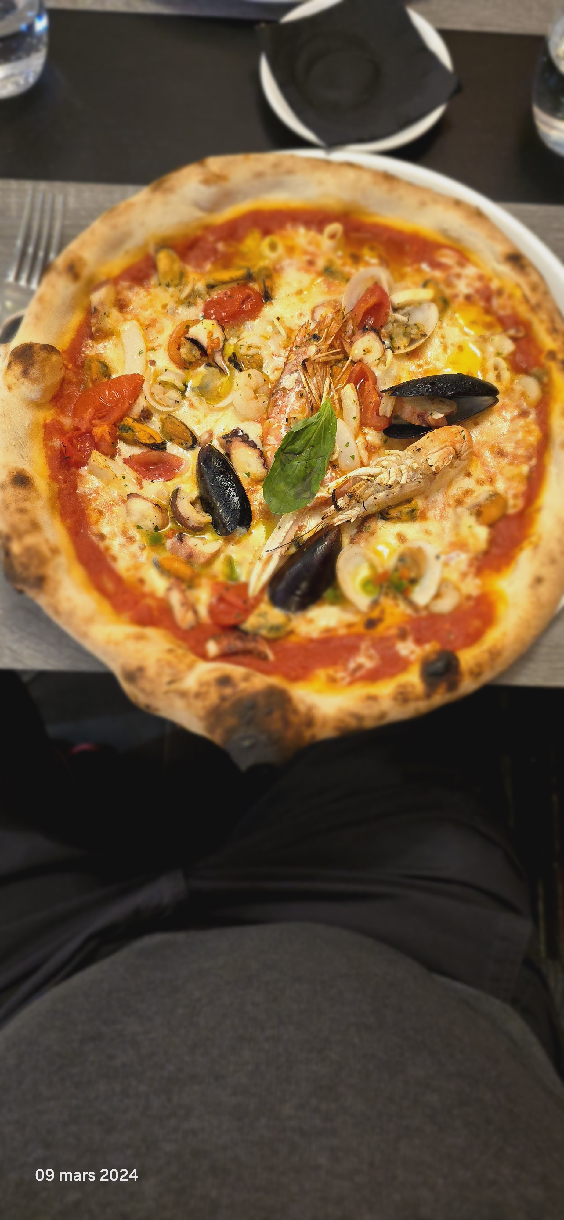 Il faut aller manger la pizza aux fruits de mer. Un délice. De plus le ☕️ est excellent.