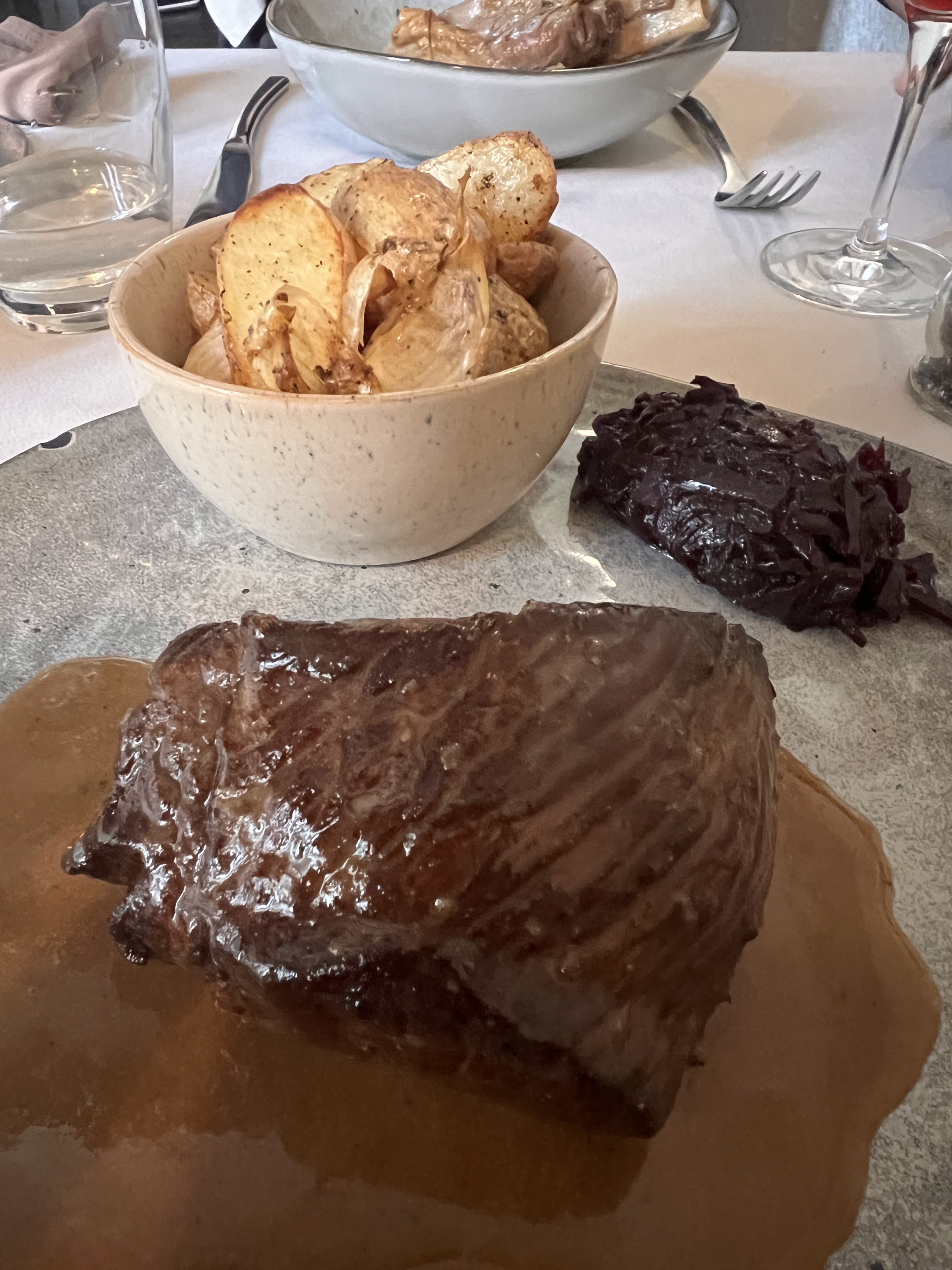 Restaurant fantastique, avec un bon service. Plats délicieux, accompagnés de vins assortis sur recommandation. L'ambiance est géniale. Nous y avons dîné 2 soirs et nous avons apprécié !