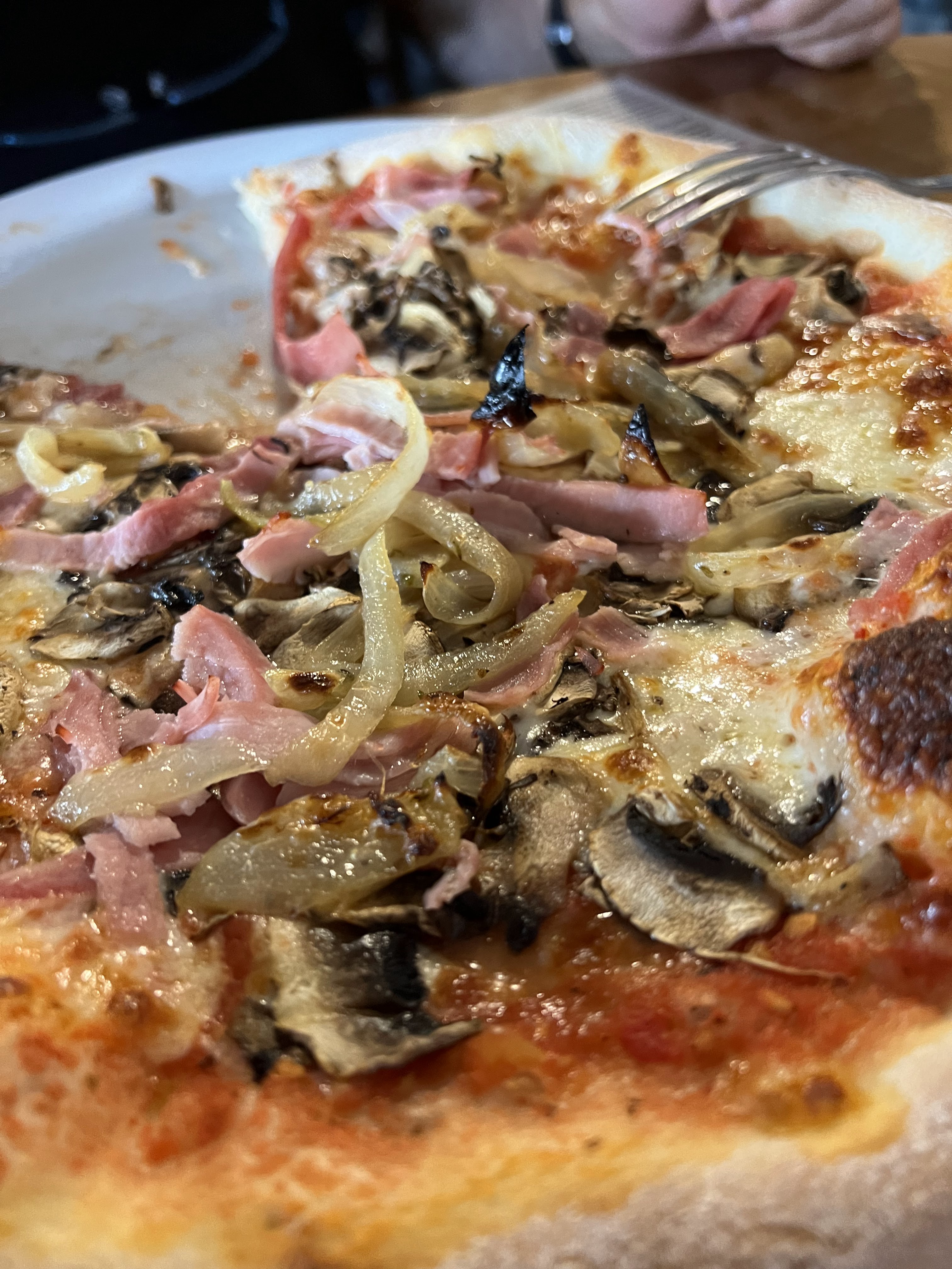 Pizza très très bonne avec une belle garniture et la possibilité de faire moitié pizza moitié salade avec une certaine formule c’est assez cool ! Service correct ! Le tiramisu m’a un peu déçu, par contre