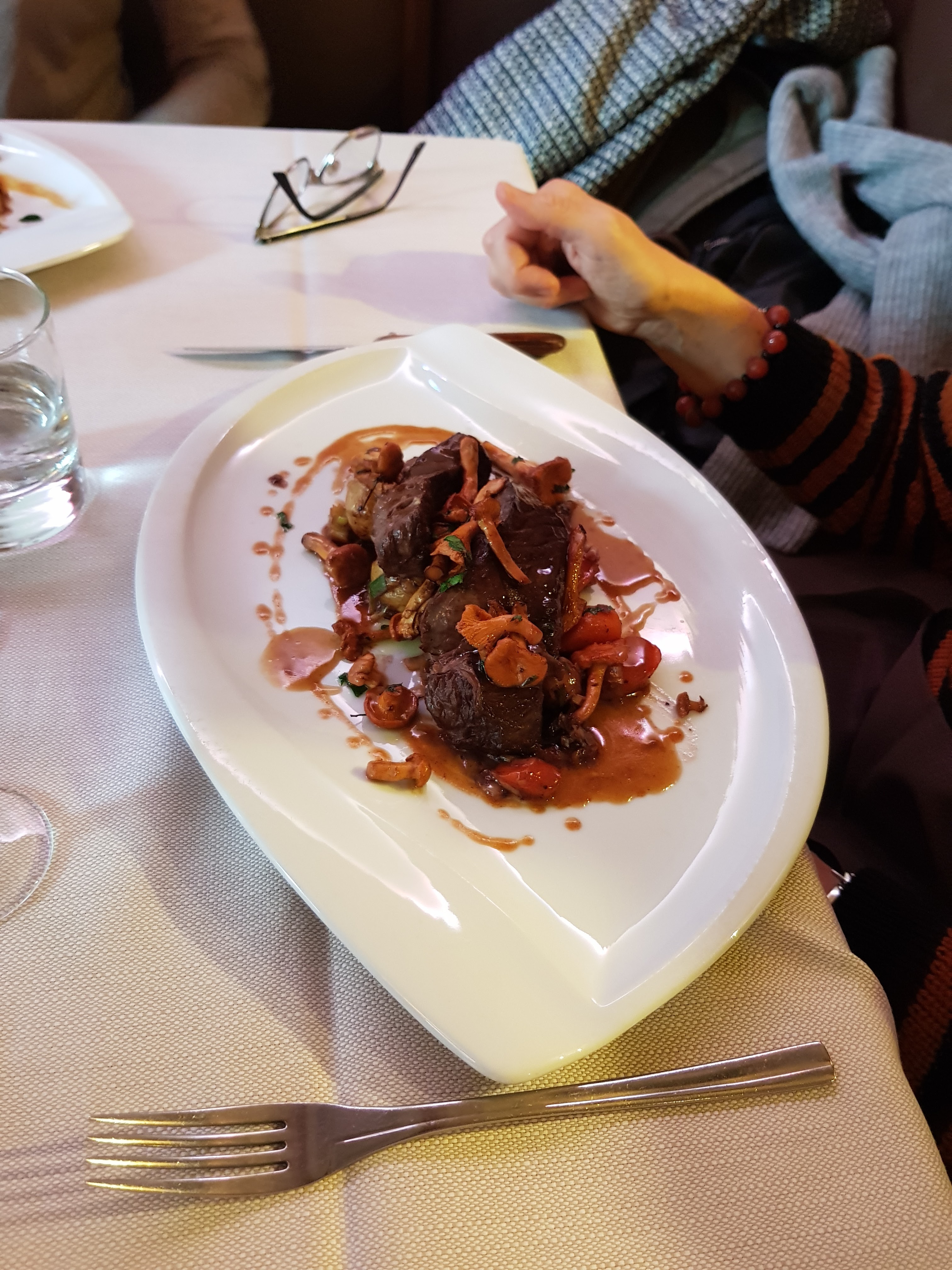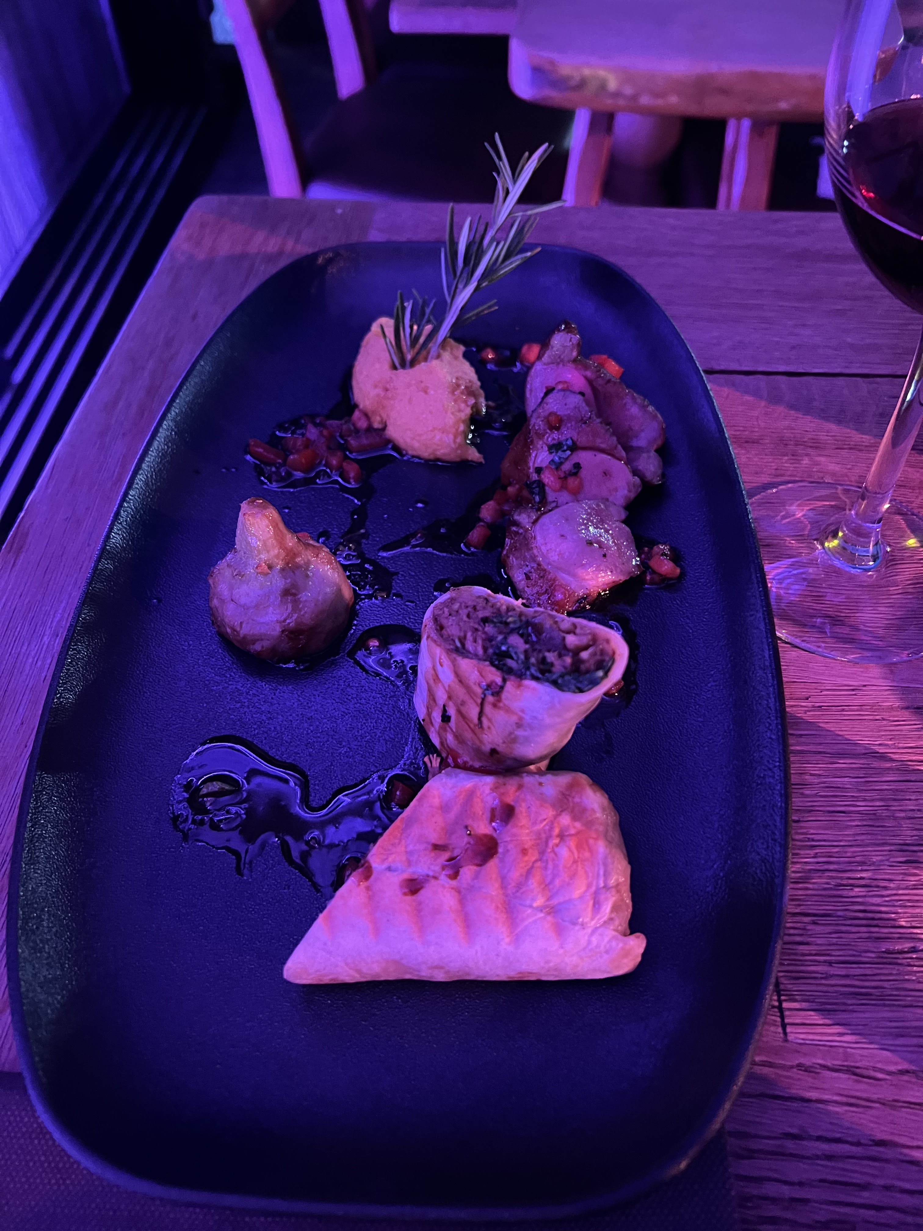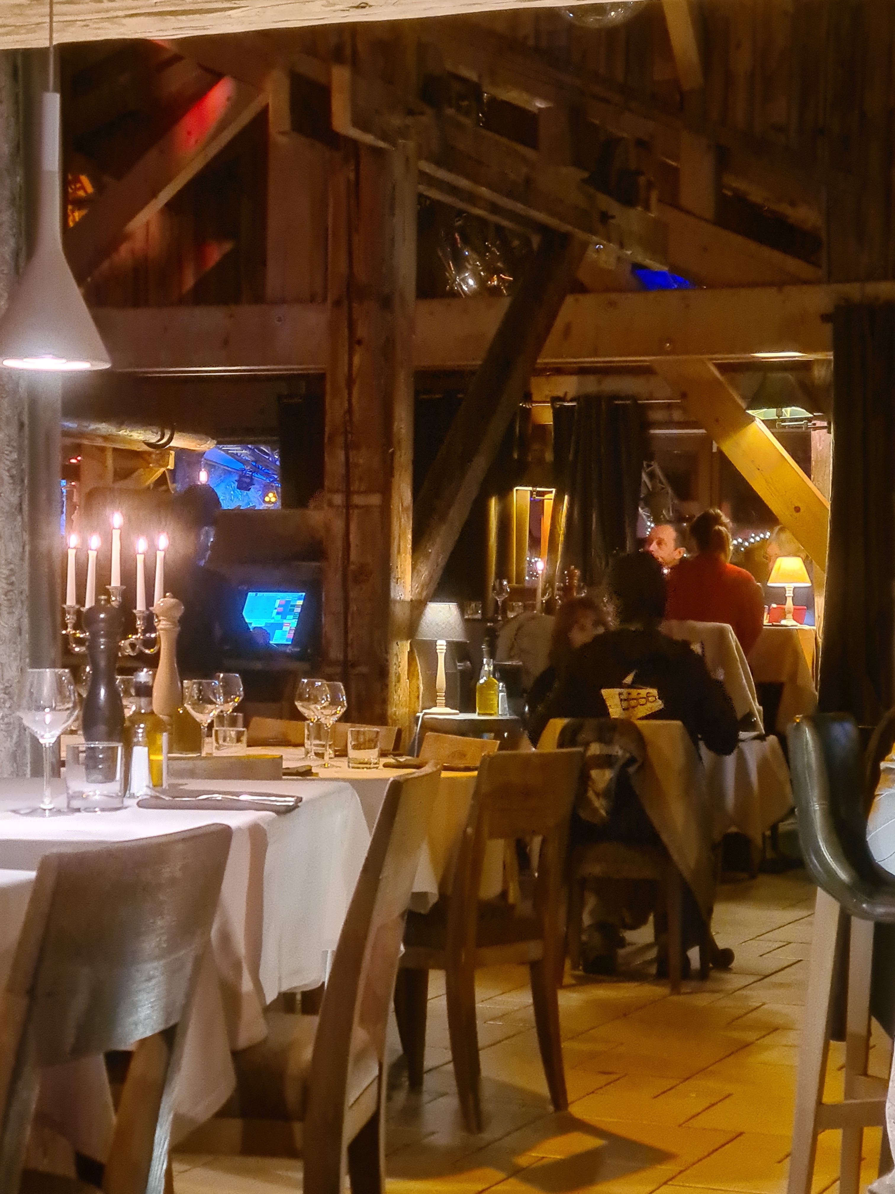 Des plats délicieux. Un service chaleureux et attentionné. Petit bémol sur l’ambiance vs. Le cadre chaleureux de la montagne. De la musique un peu trop forte et des fumeurs dans la zone bar fermée et couverte.