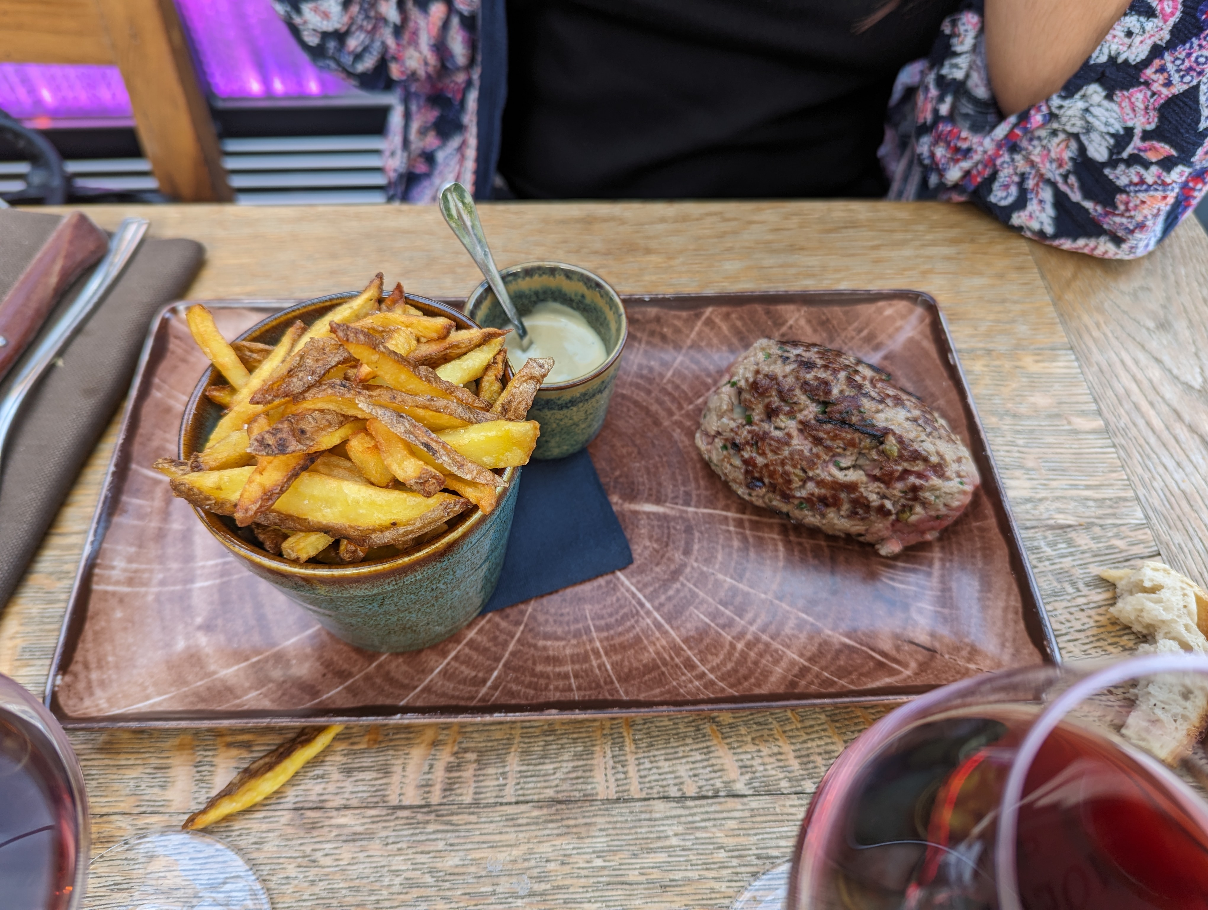 Cadre très sympa. Serveurs également. Pour autant, nous avons trouvé avec mes amies que le prix corrèle guère avec la quantité dans les assiettes. Bien que les plats aient été bon malgré tout. Nous avons également ressenti que le serveur nous pousse à la consommation. De plus, des sauces sont proposés en accompagnement des frites sans préciser que c'est en supplément. La note nous l'a annoncé. Voilà c'est simplement notre avis, nous espérons ne pas recevoir de commentaire malveillant ou mal pris étant donné les retours qui ont été fait à d'autres clients qui n'ont pas été très satisfaits non plus.