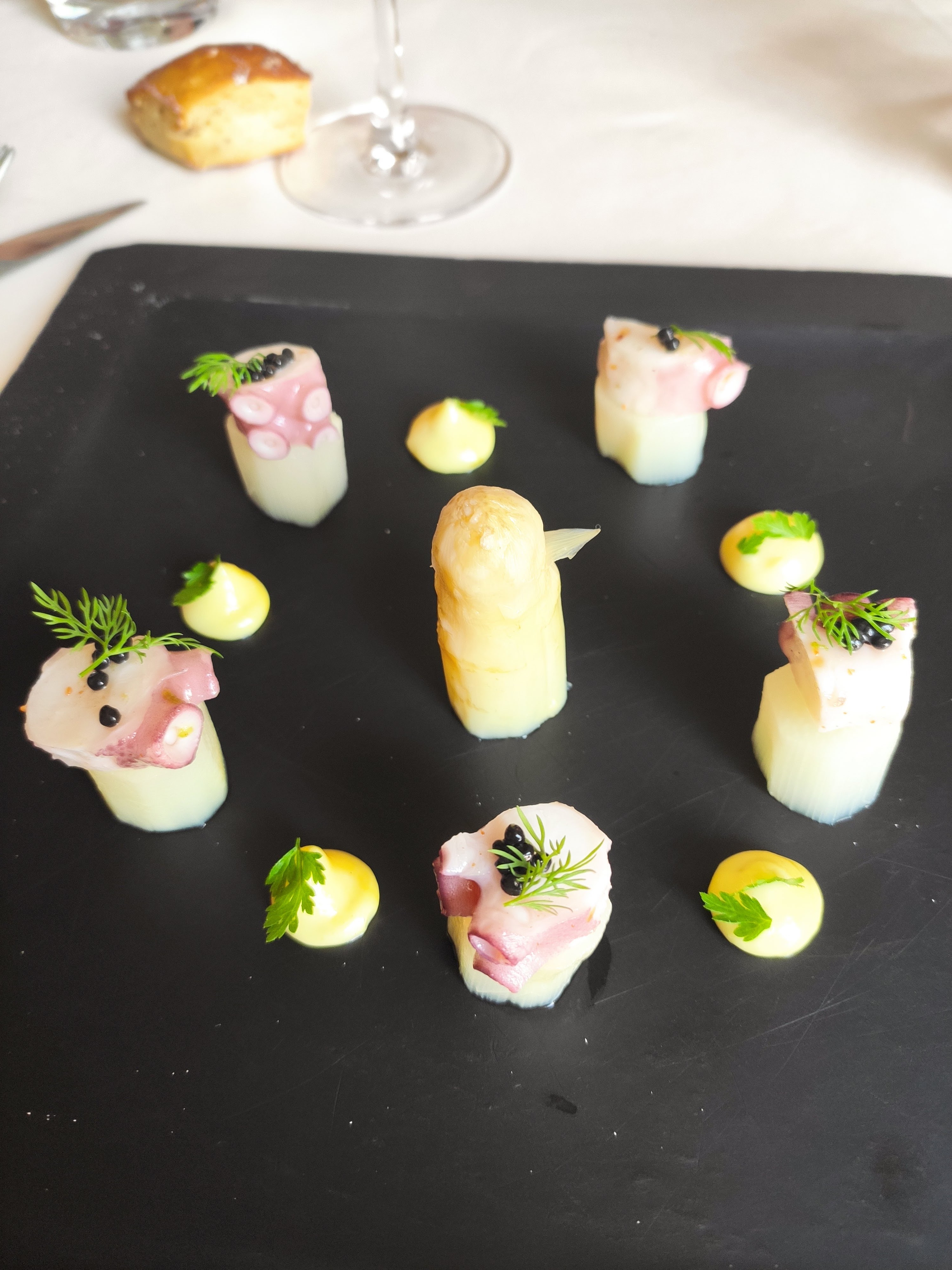 Un repas enchanteur, d’une finesse extrême. Des assiettes de rêves, un tableau haut en couleur, pour nos papilles.
