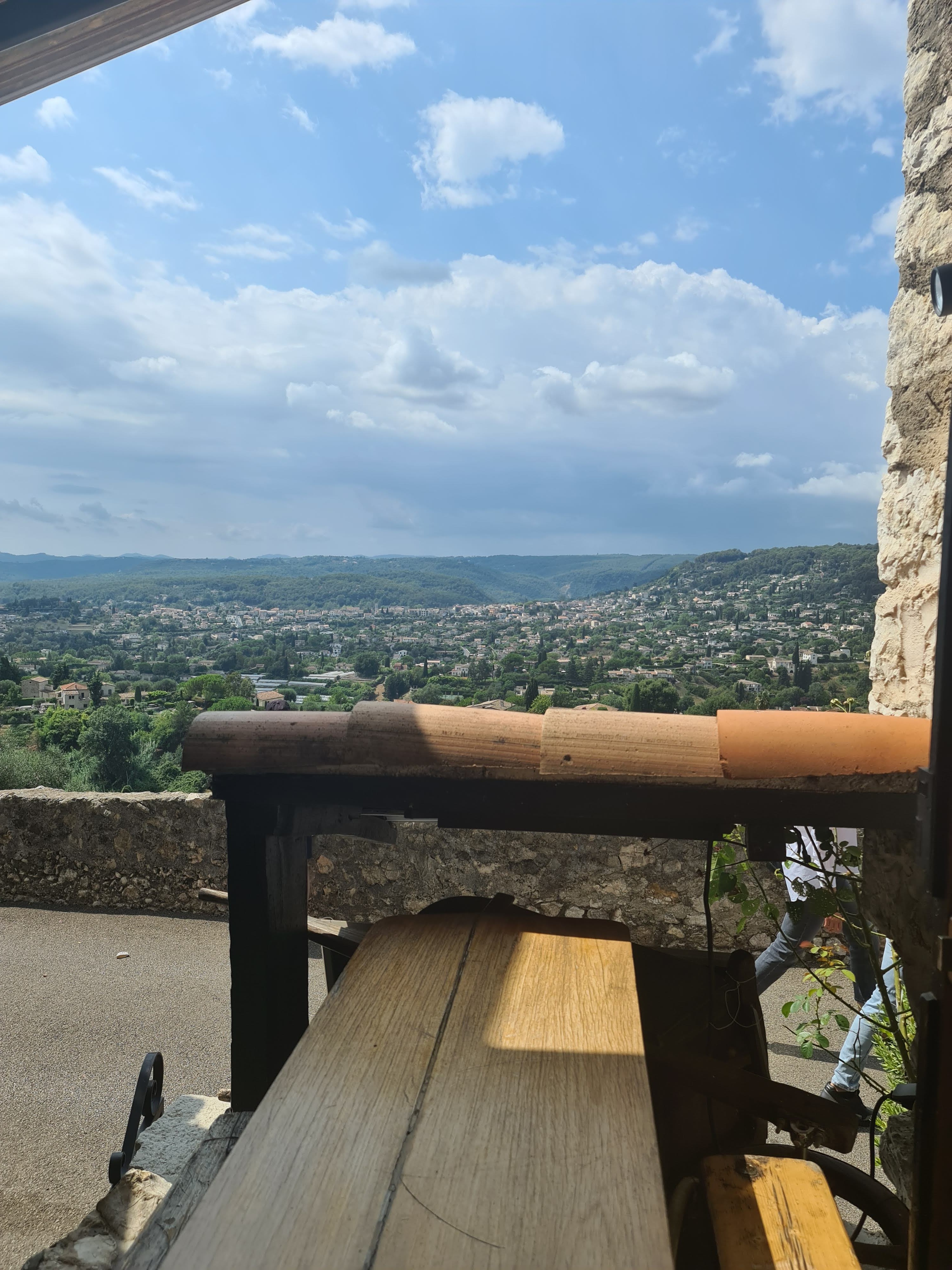 Vue imprenable sur st paul de vence, haut cite a visité, rest tres bien situé, nourriture comme a la maison, bien agreable en inter saison d'etre sur la terrasse au soleil, et d'avoir un bon repqs avec une belle vue.