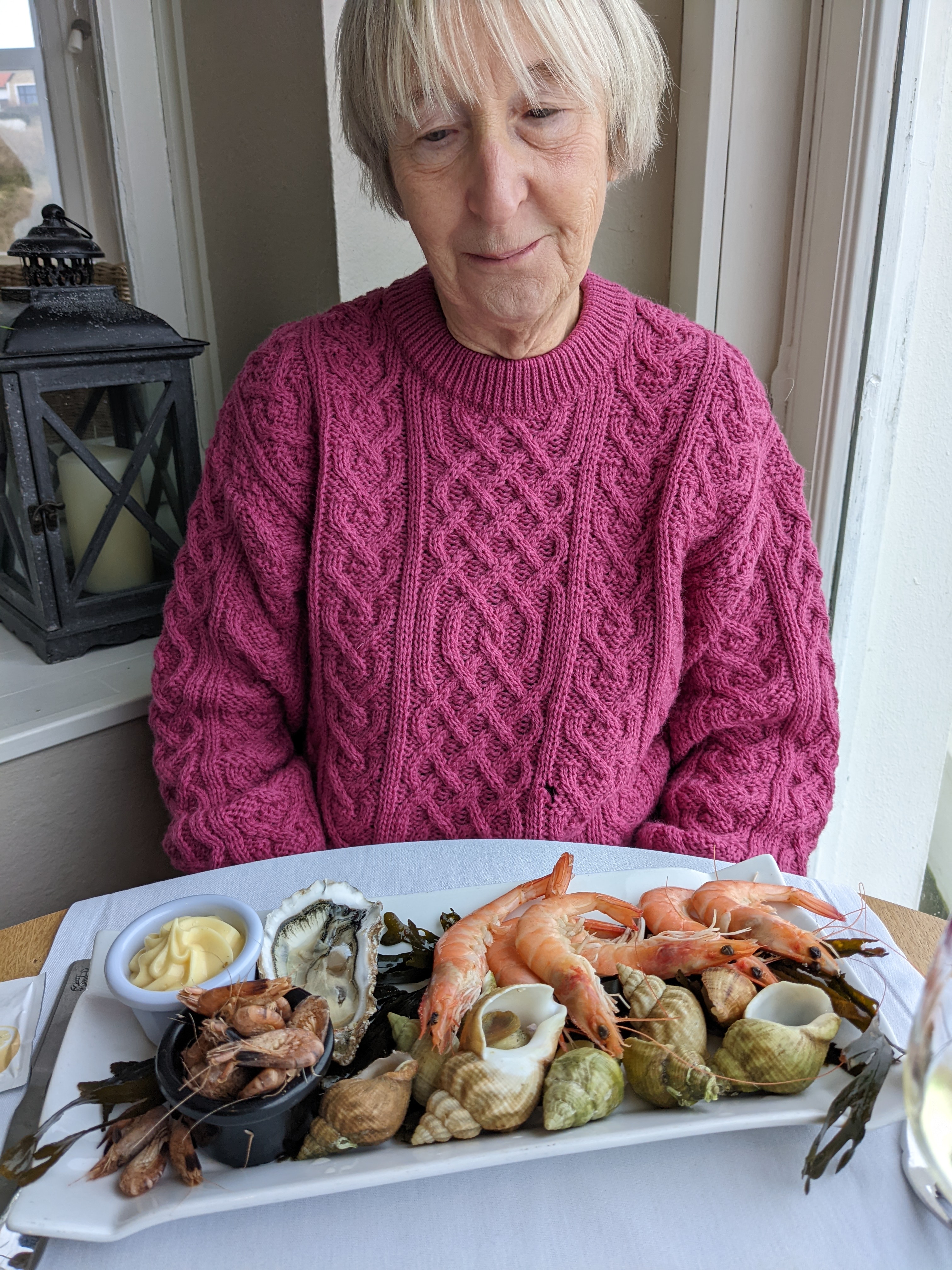 À éviter, à mon sens: le tourteau (voir plus bas). Nous nous réjouissions d’y aller entre collègues pour un repas un samedi midi. Si l’accueil fut cordial, l’ambiance s’est vite tendue. Nous avons eu la sensation que toutes nos questions posaient problème. J’avais très envie d’un tourteau. Avant de regarder la carte, j’ai demandé s’il en restait: « oui bien sûr » m’a été renvoyé comme si c’était une question idiote. Puis j’ai demandé la taille des tourteaux: « ben normale ». J’ai arrêté d’insister. Ma collègue a demandé la composition des légumes d’une entrée: « comment voulez-vous que je le sache? ». En insistant, le serveur est allé voir en cuisine (!) et à trouvé l’info. C’était désagréable. Le tourteau s’est avéré peu copieux, sec et insipide, à mon avis reçu sous vide et déjà cuit. J’ai l’habitude d’en cuisiner moi-même et j’aurais dû me méfier d’un tourteau proposé à 14€ à la carte alors que les plats (qui ont l’air pas mal) tournent autour des 25-30€. L’assiette mixte en entrée était cependant délicieuse, avec des bulots exquis. Malgré une vue époustouflante et le passage de deux phoques, l’expérience globale fut décevante, surtout par la médiocrité du service. (Mention spéciale pour la réponse qui tue à la question de savoir quelles falaises nous pouvions apercevoir à l’horizon: « ben, l’Angleterre! ».)