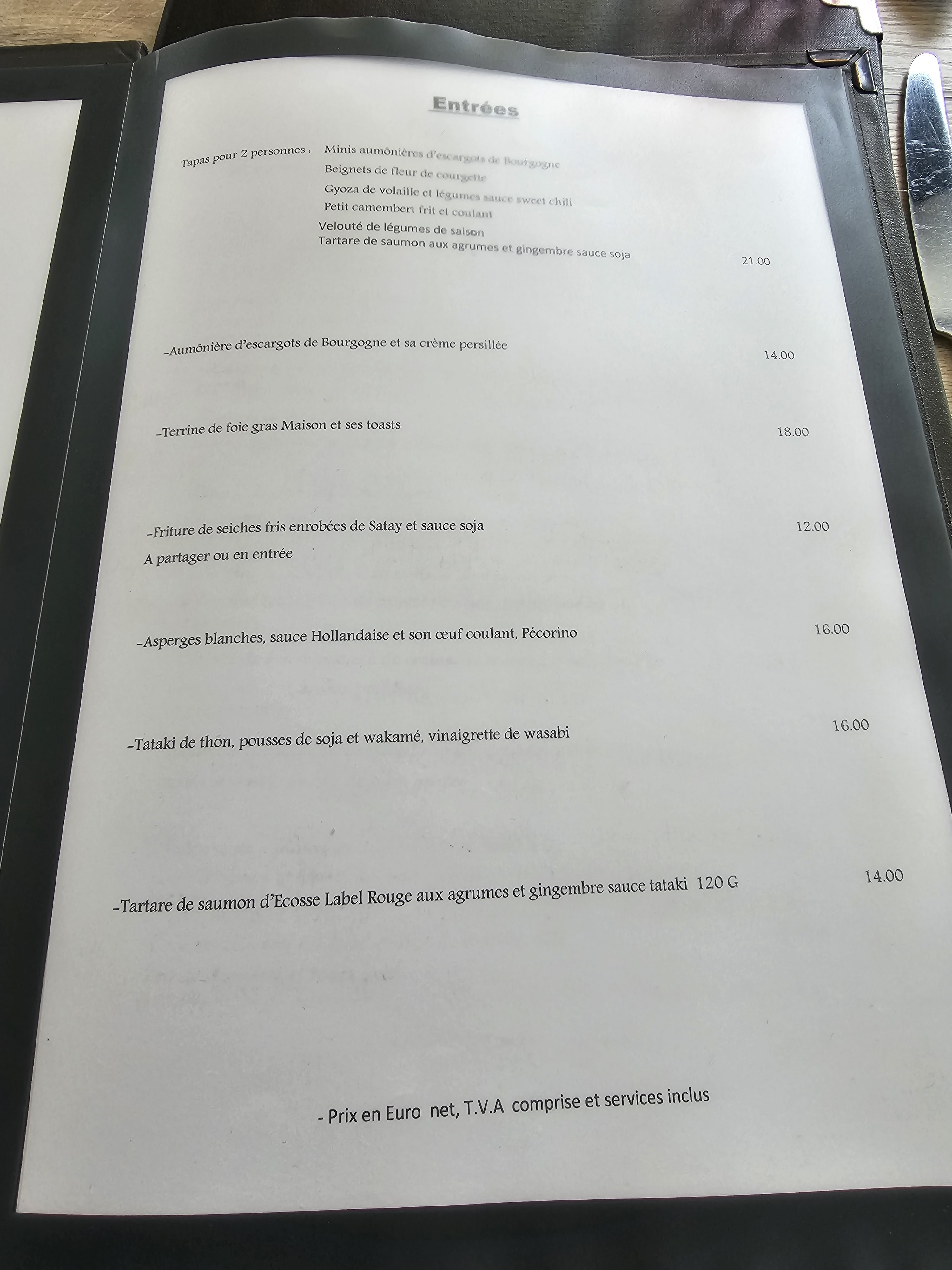 Nous avons été très satisfait de ce resto avec un très bon qualité/prix. L assiette de tapas est une belle découverte ( superbe mousse de foie gras) le tartare coupe au couteau avec un accompagnement parfait les quantités sont très satisfaisante ! Et le dessert rien à redire ! A recommander sans modération