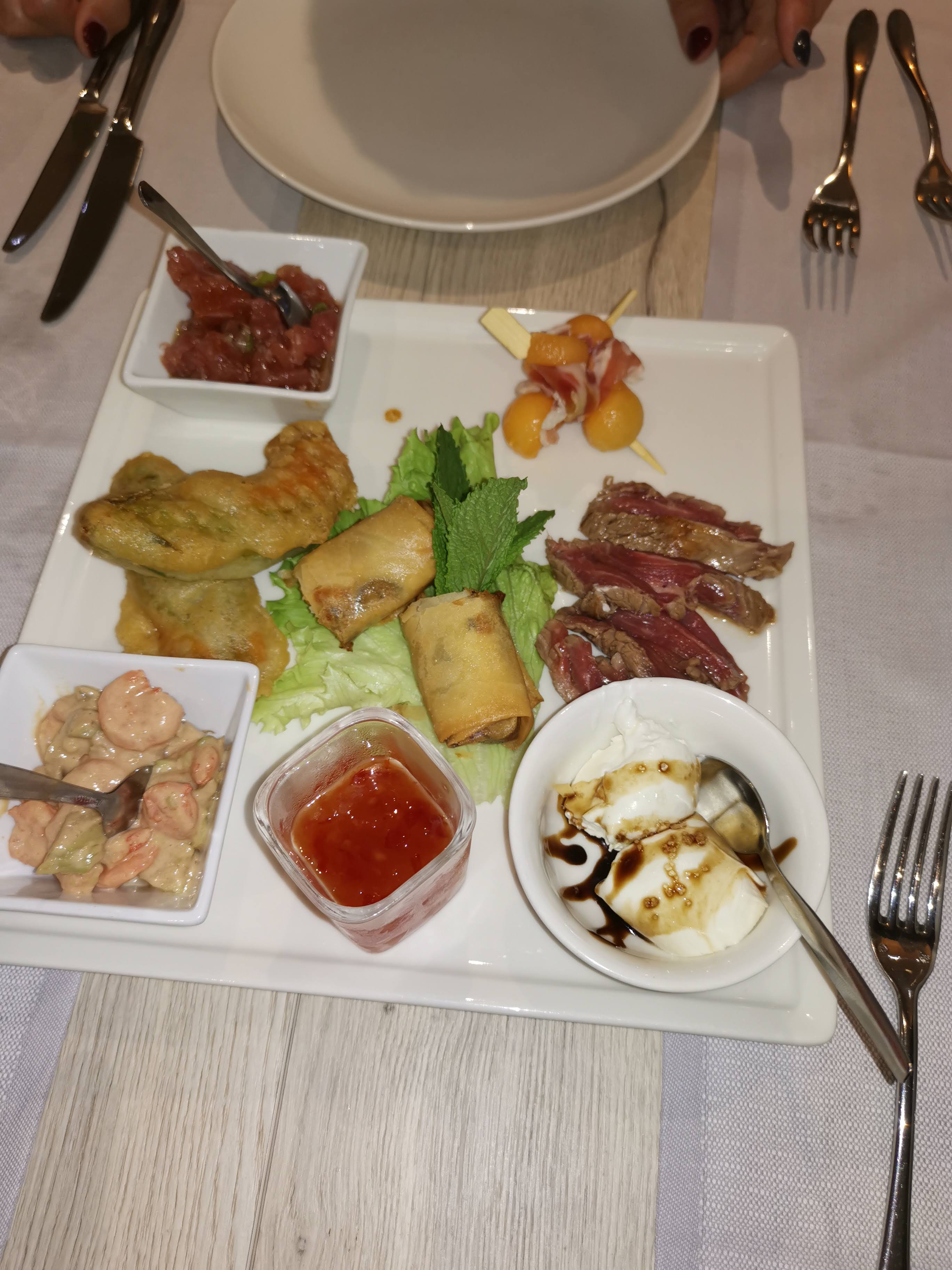 Nous avons voulu tester ce restaurant et nous avons été très agréablement surpris ! Le service était parfait avec des serveurs très souriant et aux petits soins pour nous. Nous nous sommes partagé une entrée de tapas délicieuse avec des produits frais et qui changent de ce qu'on l'on peut avoir dans d'autres restaurants. Et pour les plats nous avons pris un rumsteck avec une cuisson très bien maitrisé, une sauce exquise et des accompagnements très bons. Ainsi qu'un cabillaud pour ma part parfait avec des accompagnements également très bons ! On sent que tout est frais et fait maison. Bref nous retournerons avec plaisir dans ce restaurant qui nous a conquis ! Merci et beau travail à toute l'équipe !