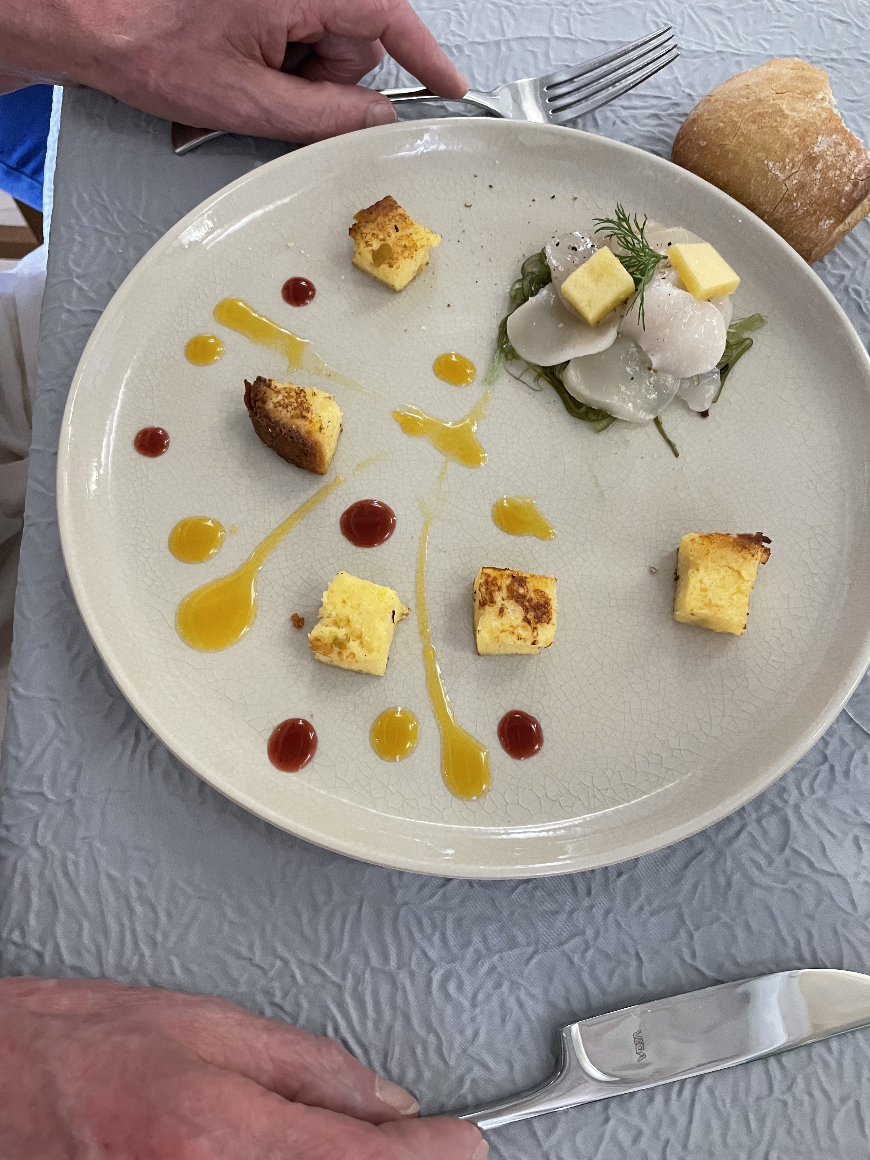 Beaucoup de restaurant fermé le mardi soir donc nous y sommes allés en regardant les différents avis. L'accueil est sympathique la salle de restauration calme et joliment décorée, petite ambiance cosy. Quelques bémol au niveau des plats. Mise en bouche classique. Gaspacho de St Jacques plein de saveur, mille feuilles de bœuf très bonne viande très tendre, déçue du dessert le pot du jardinier. Les produits sont très bons bien cuisinés mais il manque un petit plus, un je ne sais quoi ...
