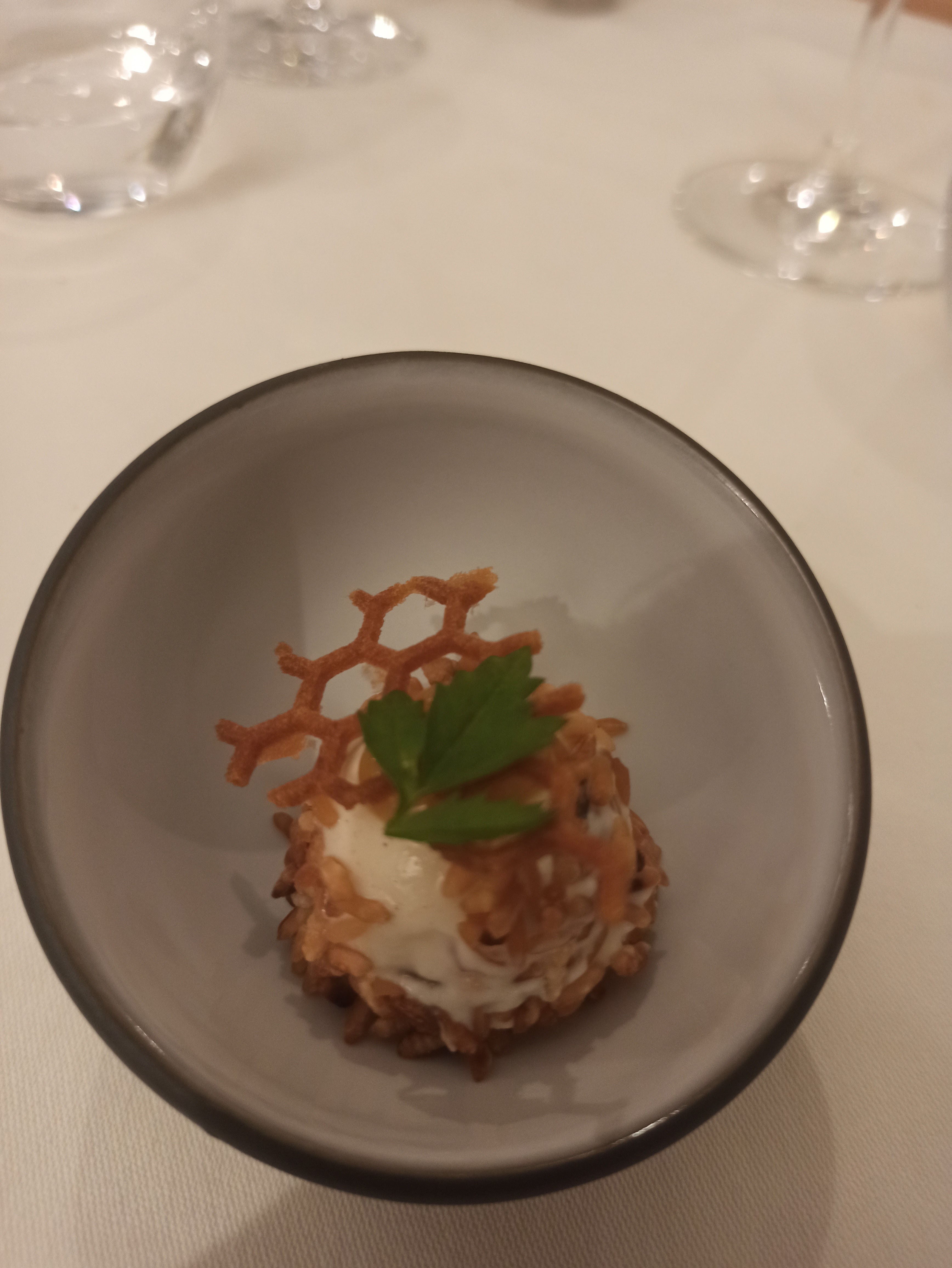 Trés belle decouverte. Excelent repas, raffiné et trés bien presenté. Un trés bon service à table. Tres bon rapport qualité prix. Petite photo d'un amuse bouche. Je recommande ce restaurant.