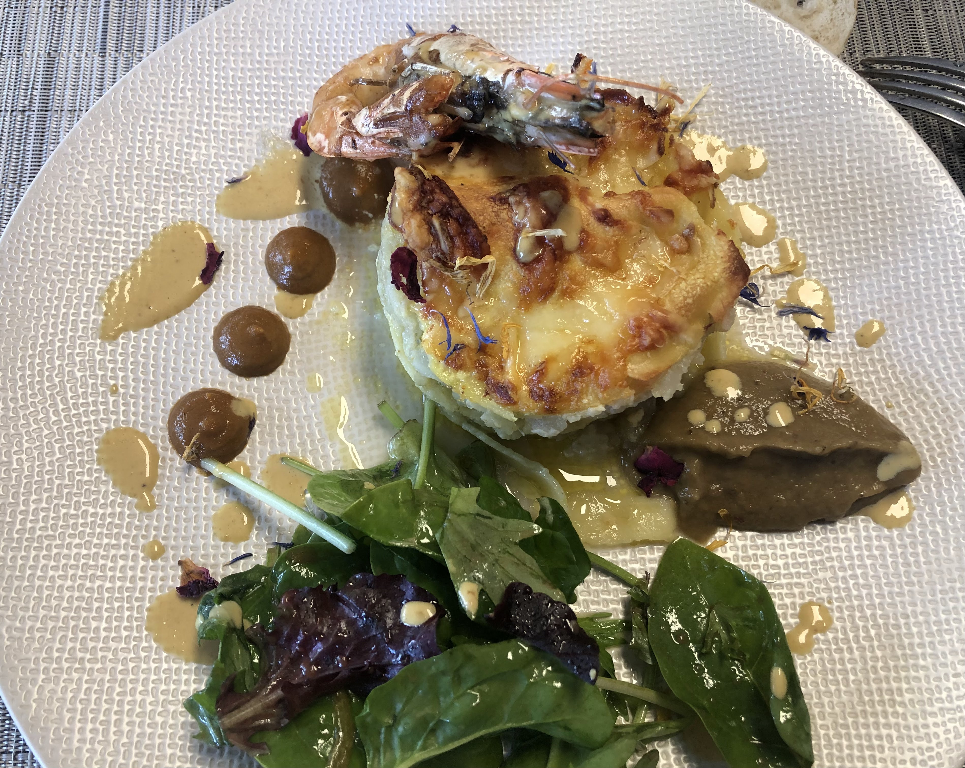 On essaye et ré essaye mais il y a toujours quelque chose qui cloche. Dommage jolie salle et bel endroit. Mais 2 crevettes et un blanc de poireau et c est tout, ça fait un peu juste. Mettez un supplément mais augmentez vos volumes. Monsieur le responsable, n hésitez pas à sourire.... Bref c était le dernier essai