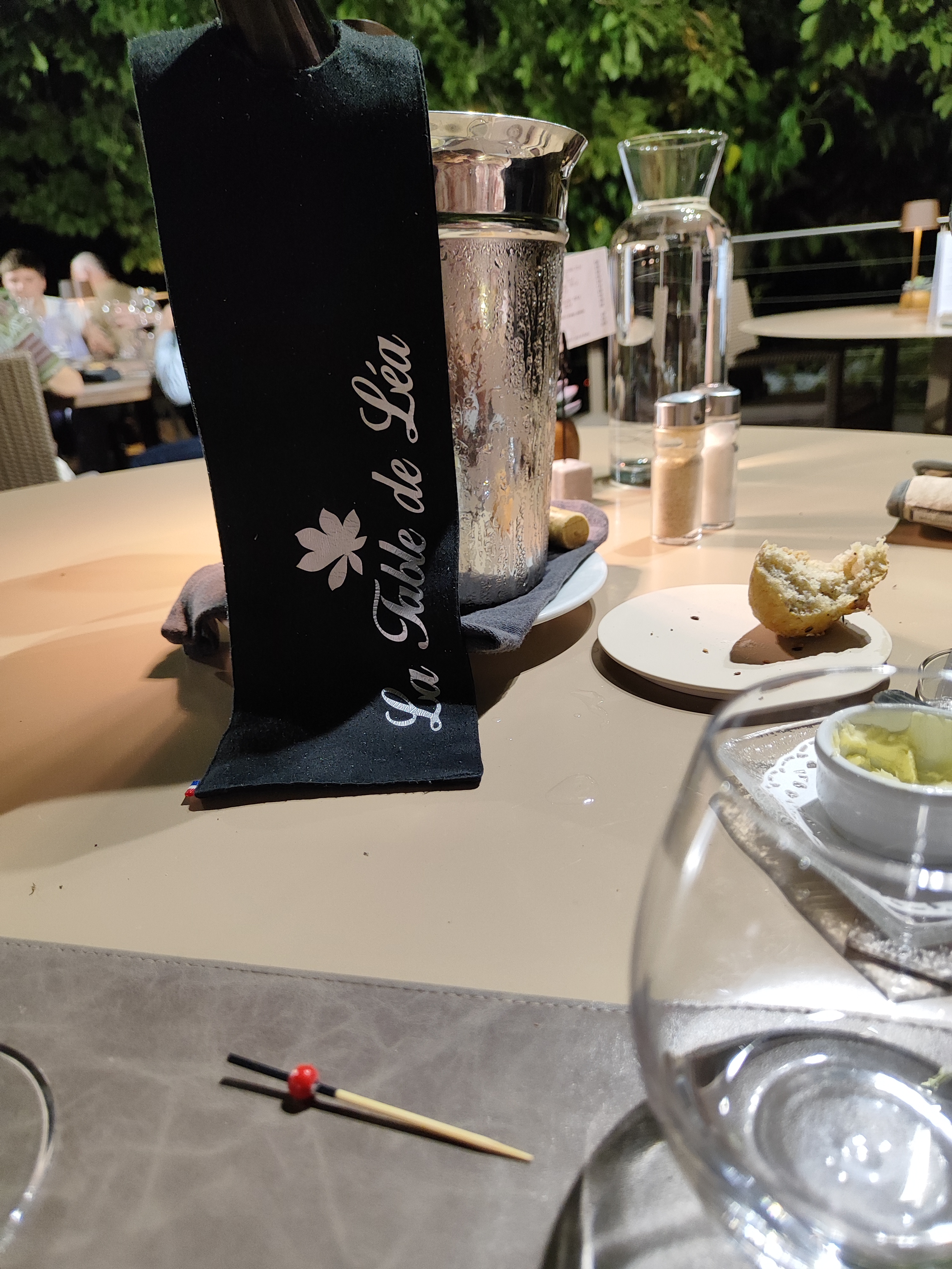 Restaurant très charmant et repas délicieux. Serveurs très aimables et plaisantins. Entre chaque service nous avons le temps de bien finir de nous restaurer. Petite aire de jeu avec des balançoires à la sortie du restaurant pour pouvoir s'amuser entre les différents services des plats. Dans ce restaurant il y a un accueil très chaleureux et une ambiance espiègle. Les plats ( mise en bouche délicieuse, entrée : j'ai pris du foie gras c'était très bon, puis un plat principal, simple mais goûteux puis un grand choix de fromages et enfin un dessert, un très bon gâteau aux deux chocolats. ). Pour finir, si vous avez l'occasion de passer à Villeneuve-de-Berg, venez manger à La Table de Léa .