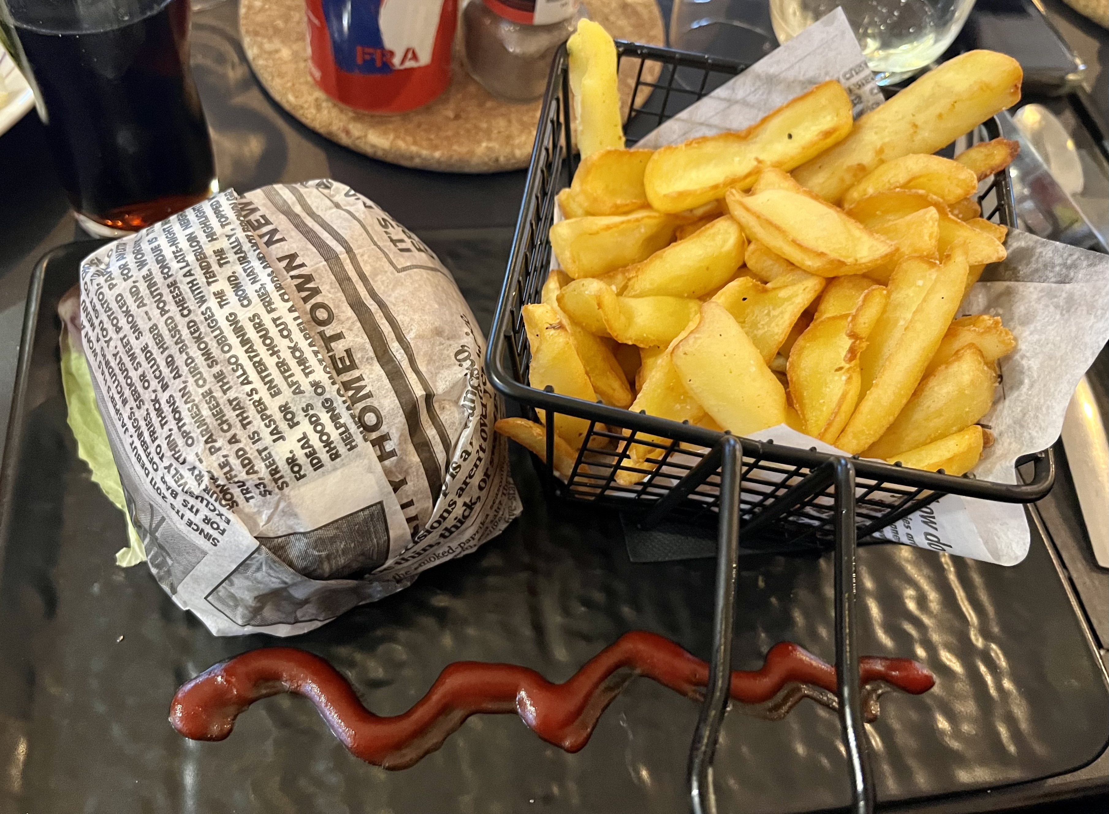 Accueilli au food truck du restaurant par un vin chaud , burgers frites excellent.