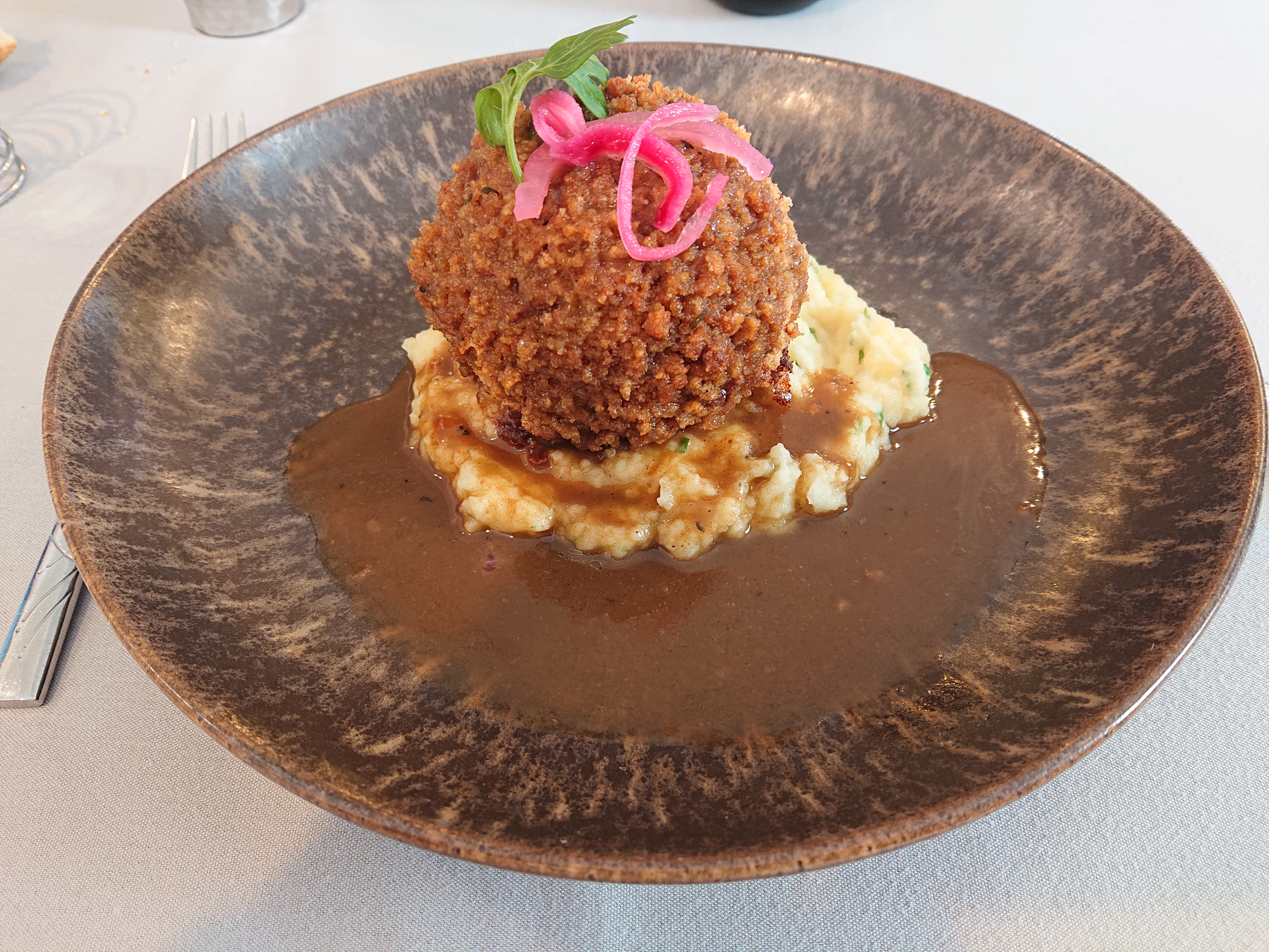 Nous avons été plutôt déçu par notre expérience. Le restaurant est grand et le personnel semblait dépassé par les évènements : pas de présentation des table, oubli des commandes (j'attends toujours mon verre de vin rouge avec mon plat...) Côté cuisine, ce n'était pas vraiment mieux. Les accords n'était pas forcément respecté: j'avais pris une sorte de carpaccio de poisson en entré, et en dehors de l'acidité, on ne sentait pas grand chose. Pour le plat, la viande était plutôt bonne, mais en accompagnement je n'ai eu le droit qu'à un bâtonnet de gratin dauphinois qui devait sécher dans les cuisines depuis un moment déjà (j'ai du utiliser mon couteau pour en arriver à bout). Seul moment de grâce (qu'on retrouve malheureusement dans beaucoup de restaurants), le dessert. Il était soigné, bon et original. Mais il arrive trop tard pour sauver le sentiment mitigé pour ce restaurant. Après avoir échangé avec les autres personnes autours de la table, le sentiment était le même : dispensable...