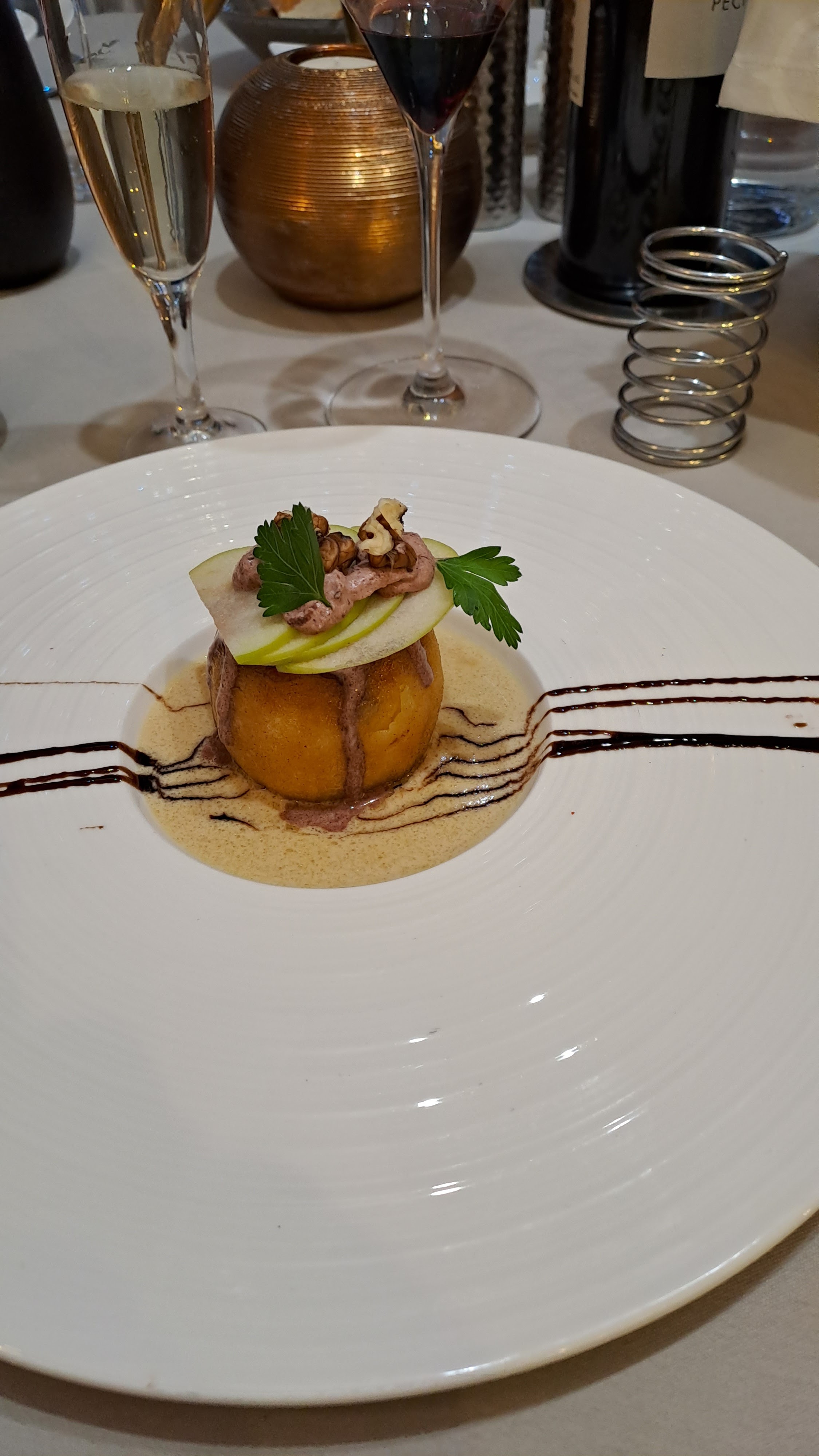 Joli cadre et repas gastronomique, excellent et copieux. Les profiterolles... que du bonheur. Merci encore à toute l'équipe du restaurant