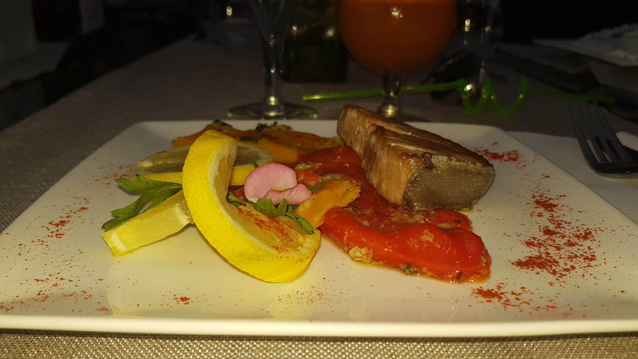 Lieu agréable, très bel intérieur personnel agréable et souriant. Nous avons pris le tartare de thon beaucoup trop pimenté nous ne sentions plus le goût du poisson..dommage ! Par contre la lotte et le St Pierre excellent, les desserts étaient très bon et copieux.