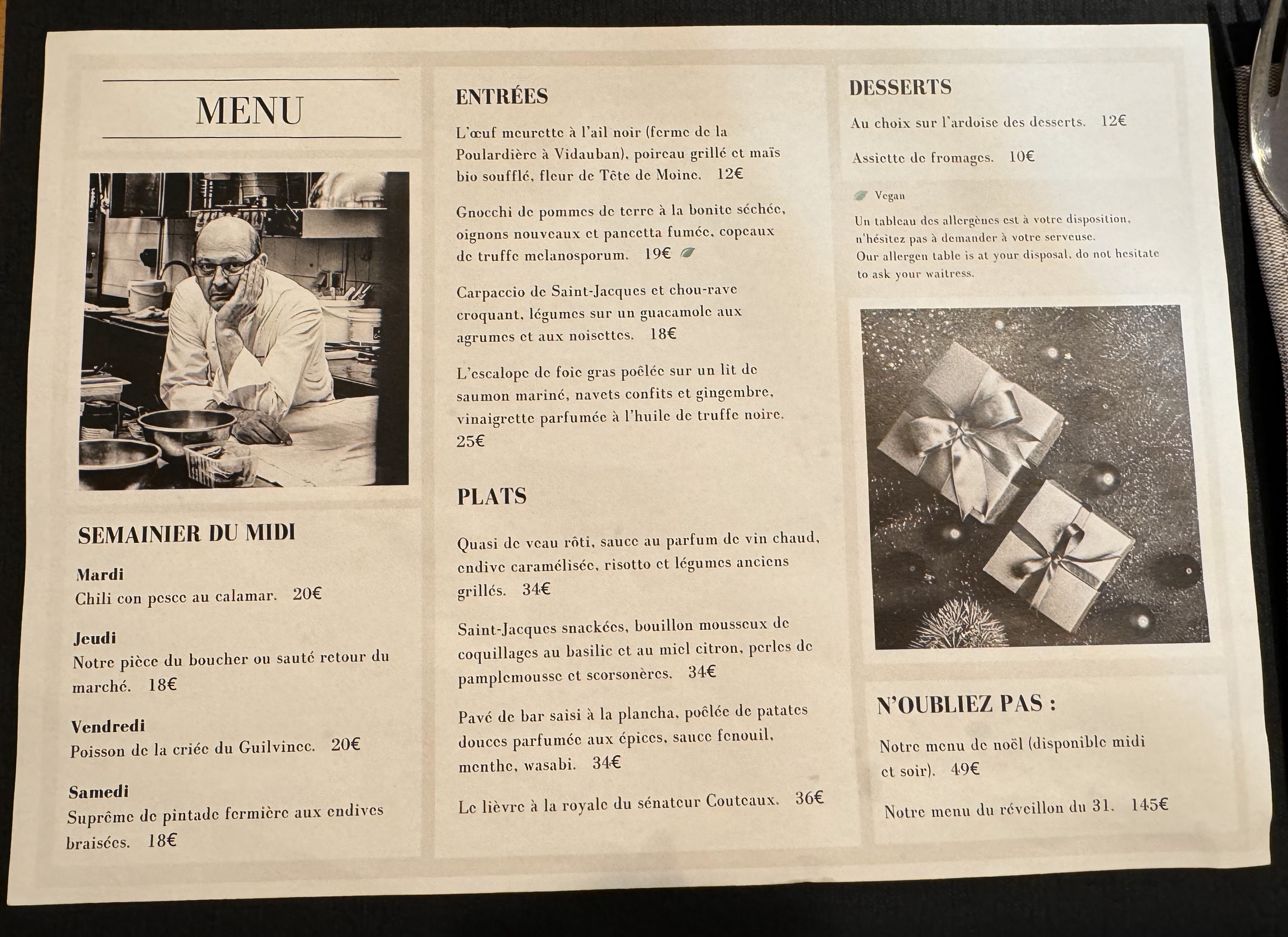 Plat du jour correct, dessert insignifiant : prix exorbitant, service indigne de la restauration, j’ai payé en espèce j’attends toujours ma monnaie,… À DÉCONSEILLER ! Adieux MOF ! Un Lorguais !