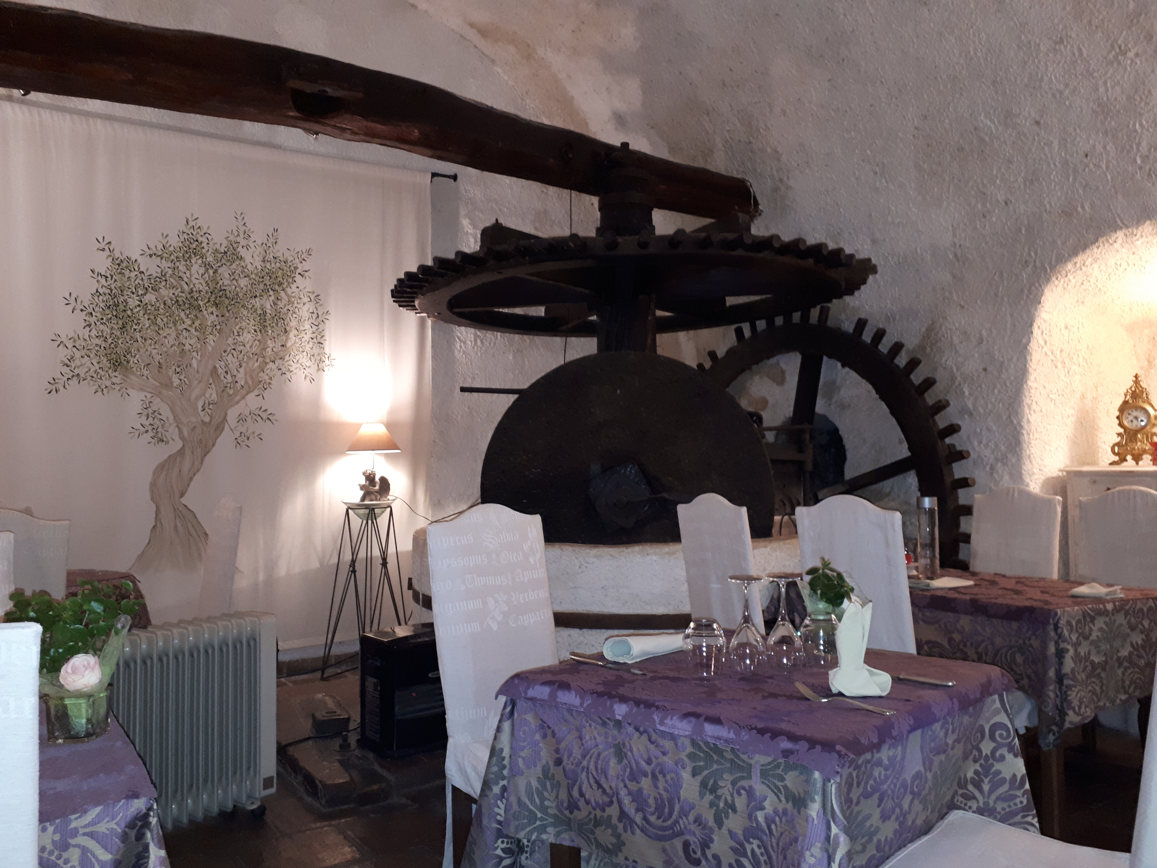 accueil sympathique, cadre agréable et original d’un vieux moulin à huile, cuisine goûteuse, prix raisonnables. Que du bon!