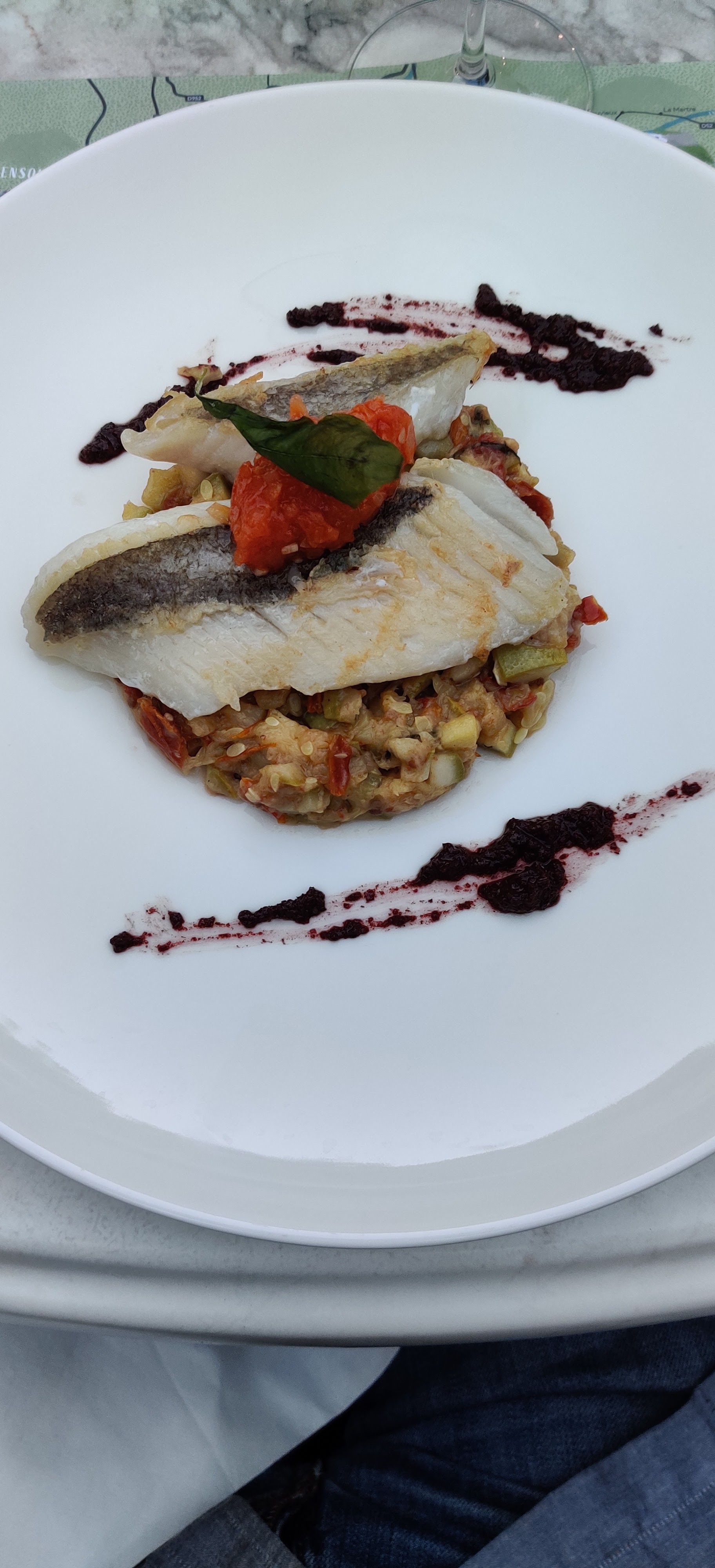 Un excellent repas, avec une cuisine fine et des cuissons précises (quasi de veau, filet de cabillaud). Deux pistes d’amélioration néanmoins: - les desserts, pas tout à fait à la hauteur (présentation de la tatin, avec une quenelle de crème un peu informe, fingers gourmands pas terribles) - le décor (terrasse) hérité du précédent propriétaire qui mériterait d’être revu (notamment la kitchissime fausse pelouse). Au total, un bon moment, les points positifs l’emportant largement