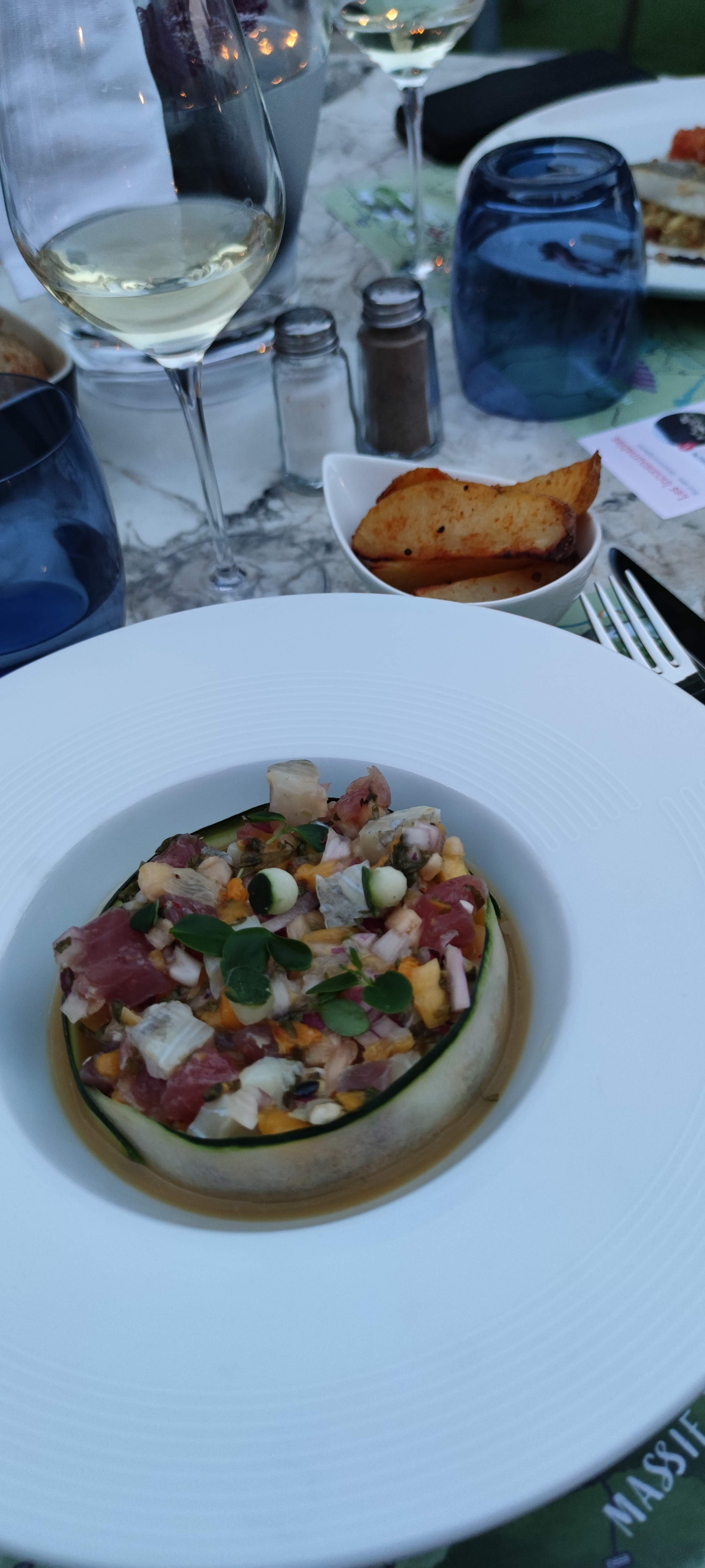 Tres jolie terrasse. Le repas n'est pas très assaisonnée.Avec plus de sel et poivre on peut l'améliorer. Pour 100€ par personne on attend beaucoup mieux. Désolé, mais il faudrait cuisiner mieux ou baisser les prix.