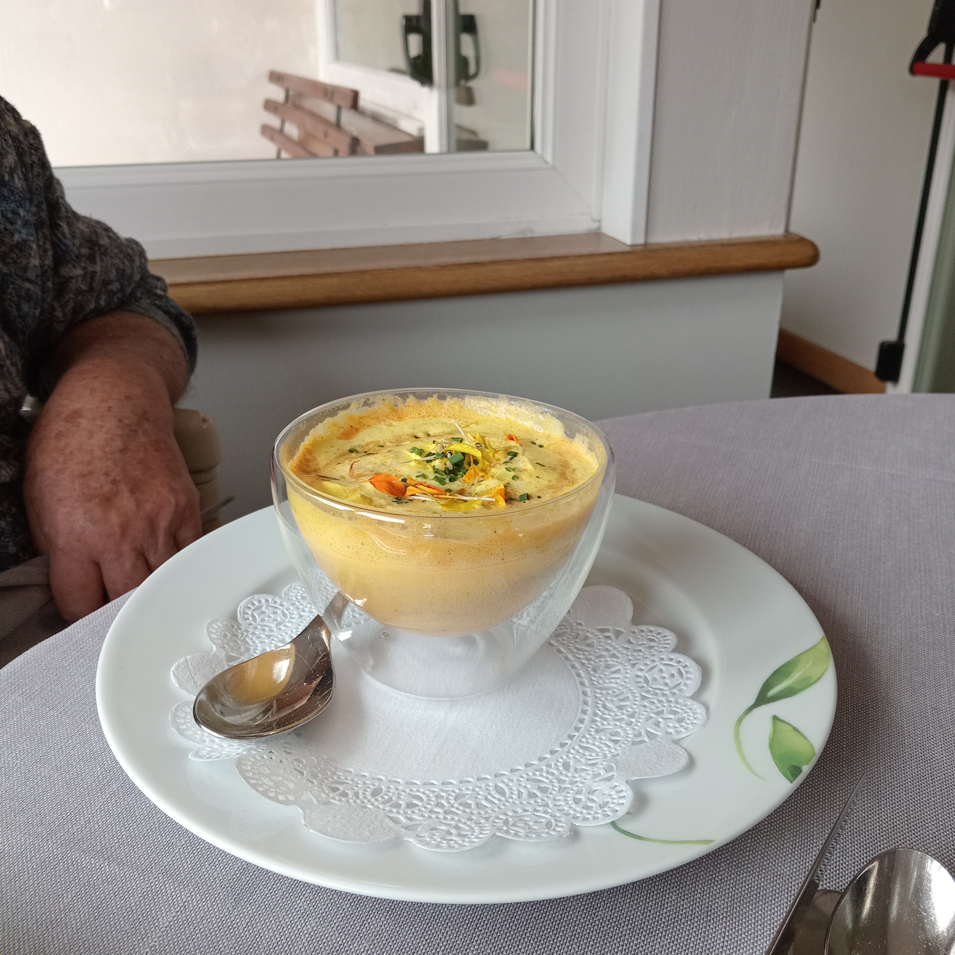 Nous y avons dîné avec mes parents car nous logions à l'hôtel dans lequel il se trouve. Nous avons passé une délicieuse soirée. Il n'y avait que 2 membres du personnel dans la salle à manger mais ils ont tout donné. Tous deux étaient très sympathiques, le menu est assez court, mais cela n'a posé aucun problème de modifier légèrement certains plats pour tenir compte des intolérances ou des aversions pour un ingrédient. On sentait le personnel sourire sous son masque, ils donnaient de bons conseils sur le vin, la nourriture était délicieuse. Cela peut paraître cher mais cela en valait vraiment la peine. Probablement l'un de nos meilleurs repas lors de notre court séjour dans les Vosges.