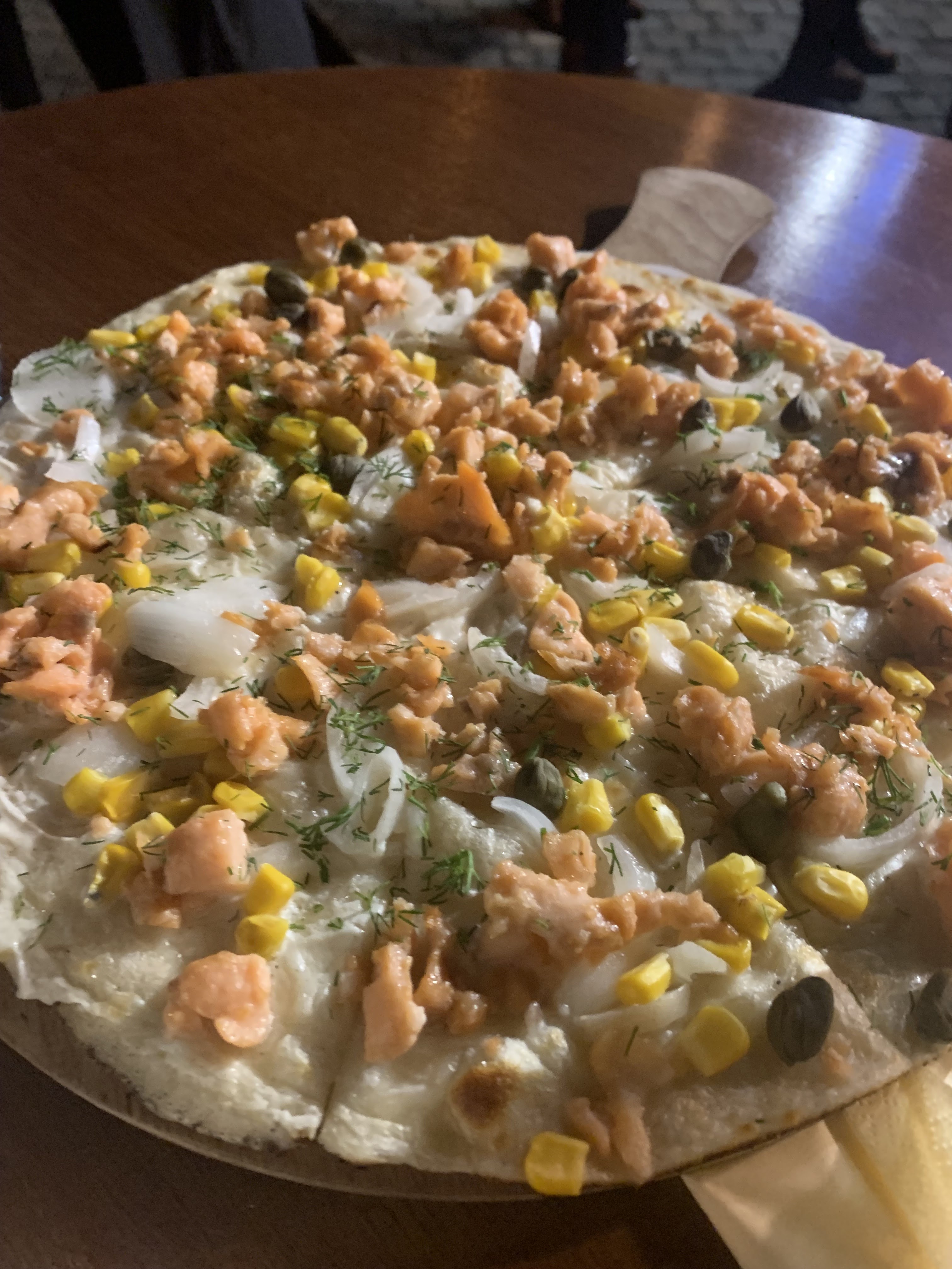 La pire falmmekueche que j'ai jamais mangé. Il y avait tellement de kurkuma (ça fait partie de la recette ?) que même le goût du munster était imperceptible. Absolument à éviter, endroit bouffe-touriste.