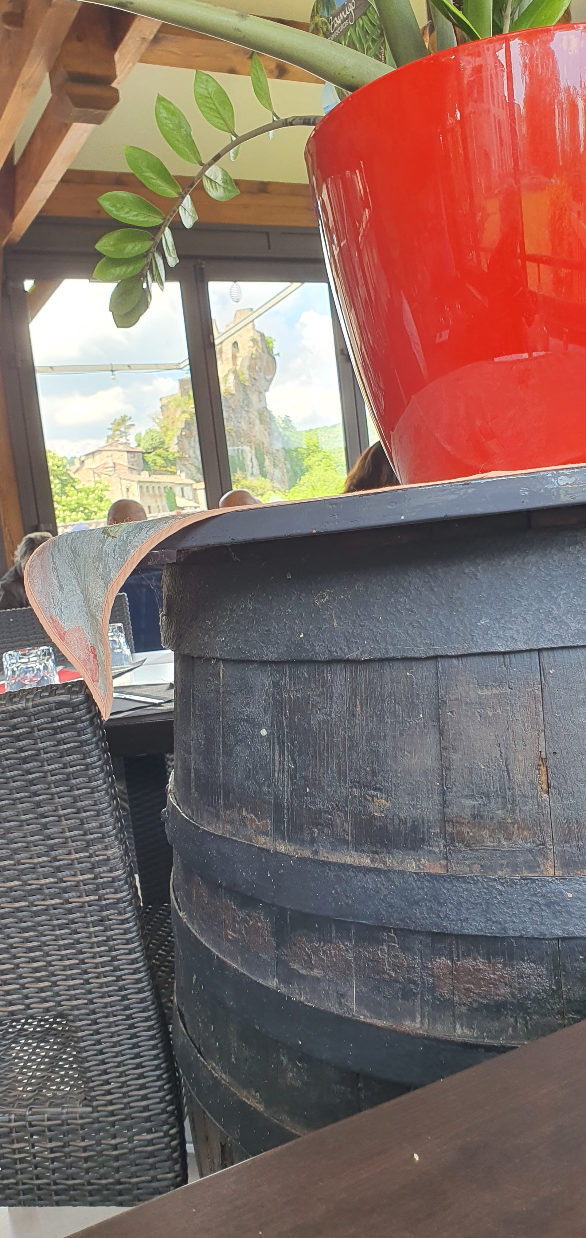Étape de retour de vacances, belle terrasse avec une vue splendide sur le château et les alentours. Très bonne table et service souriant et attentionné malgré certains avis négatifs.