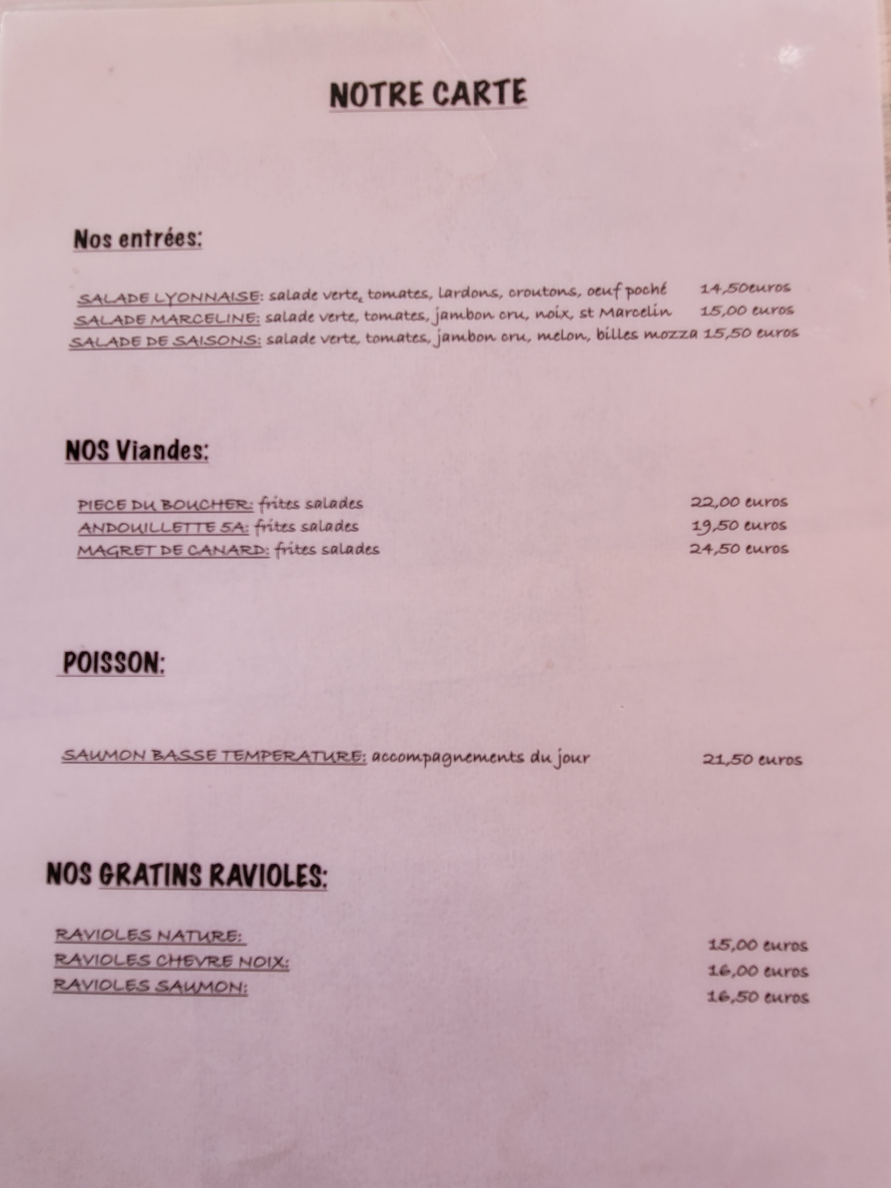 Salades bien servies, Ravioles copieuses, Service efficace, avec le charme en plus, et sans chichi. Rapport qualité / prix au top.