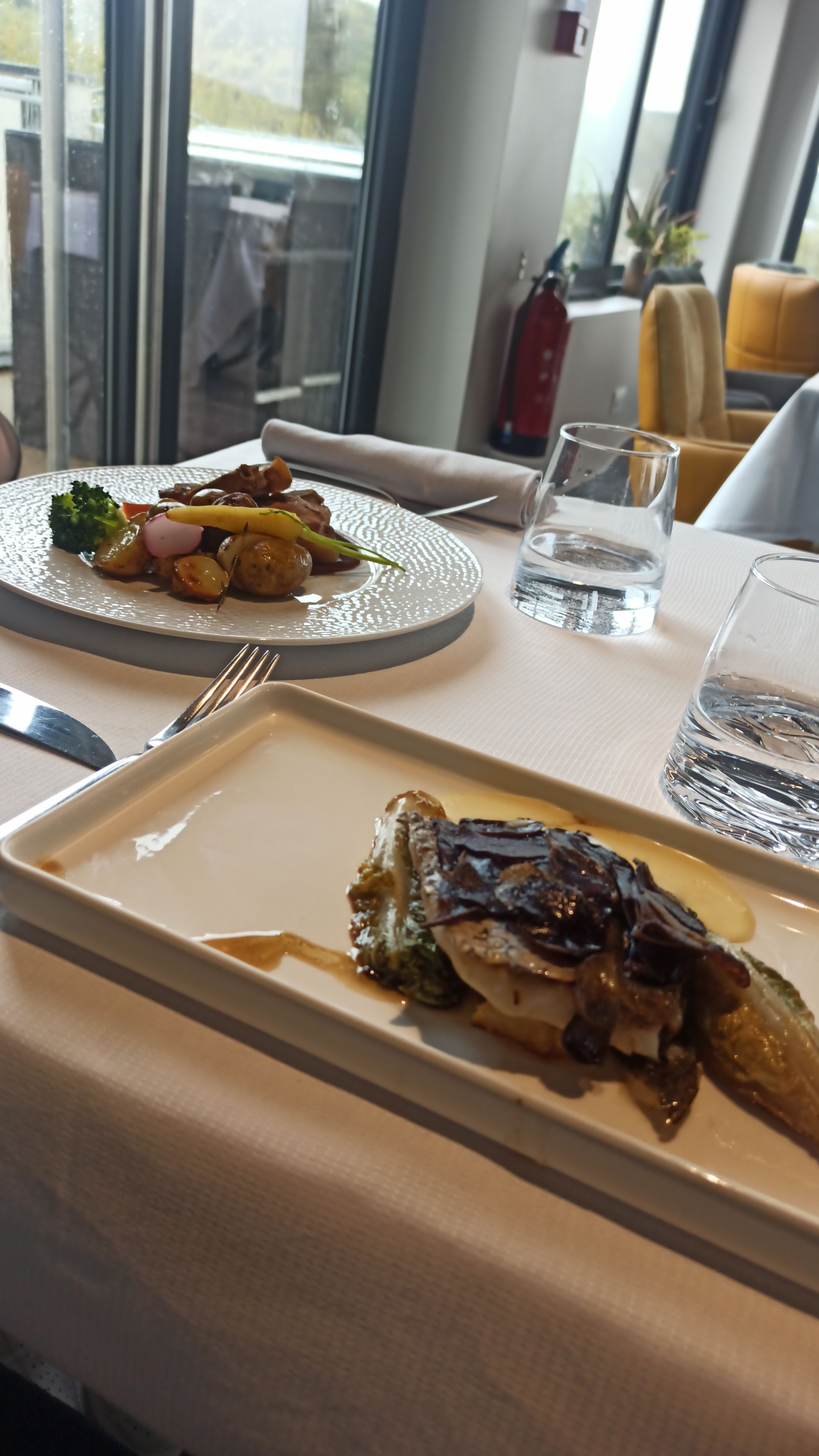Superbe découverte. Une mise en bouche surprenante et délicieuse. Les plats sont soigneusement mis en place. Et le cadre est vraiment beau. Le détour en vaut la peine, que ce soir pour manger en terrasse ou à l'intérieur. La belle vue sur la colline ajoute un plus non négligeable pour s'y sentir bien. Je recommande !