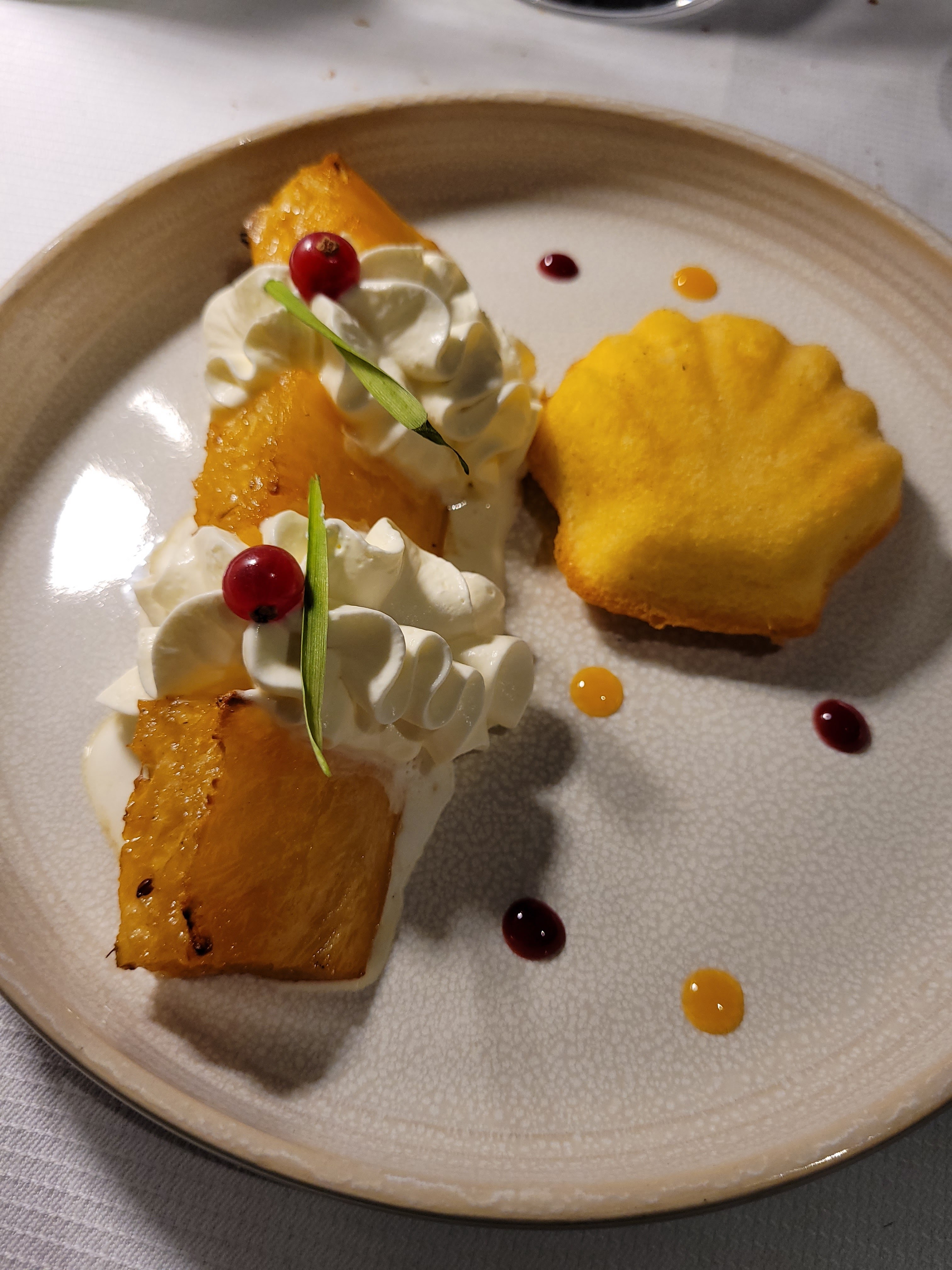Parfait. Bon et soigné. Service agréable et efficace. Personnel sympathique et accommodant (on a pu changer notre sélection en voyant celle du dessert de la table voisine 😊). Beau cadre. On y reviendra sans aucun doute. Merci à toute l'équipe.